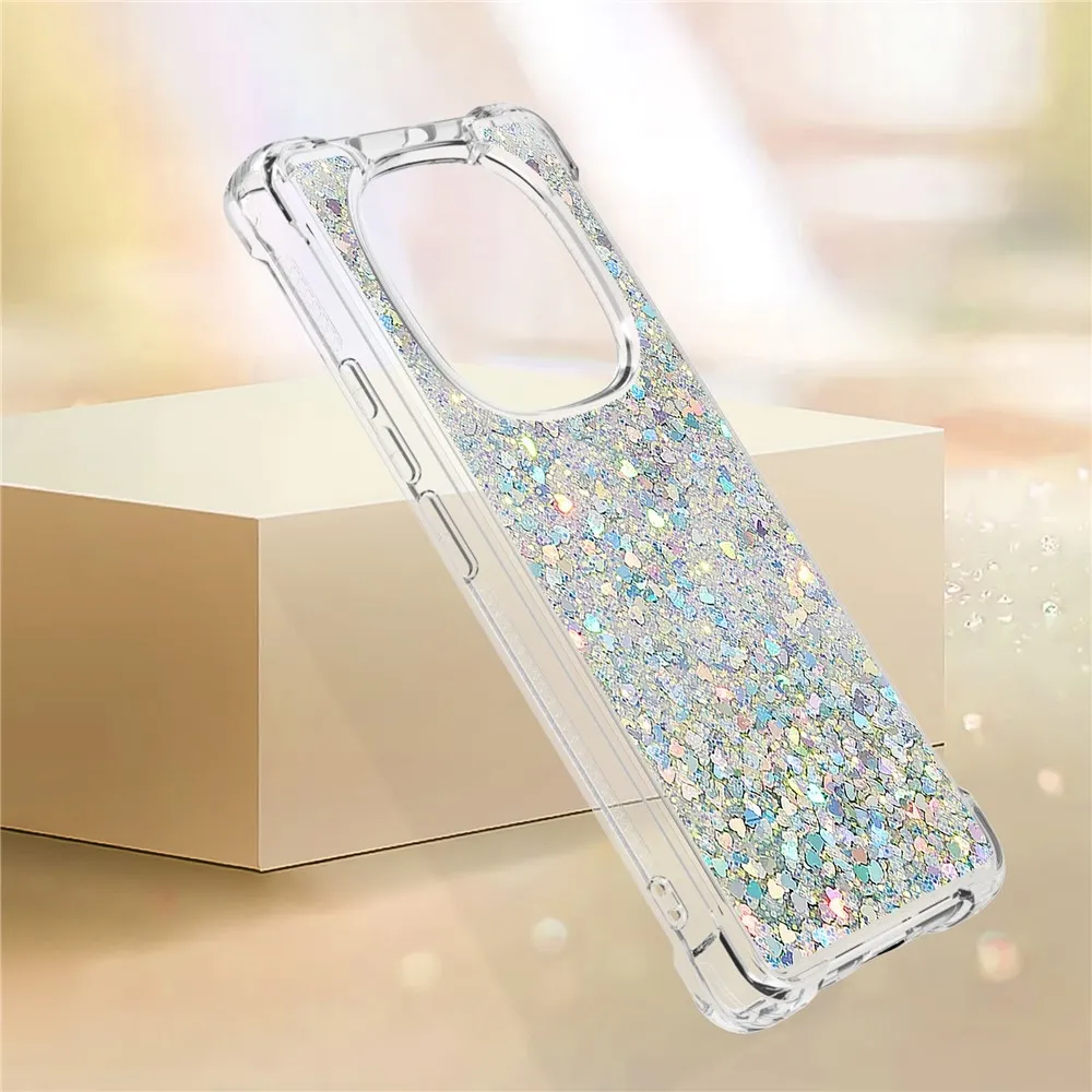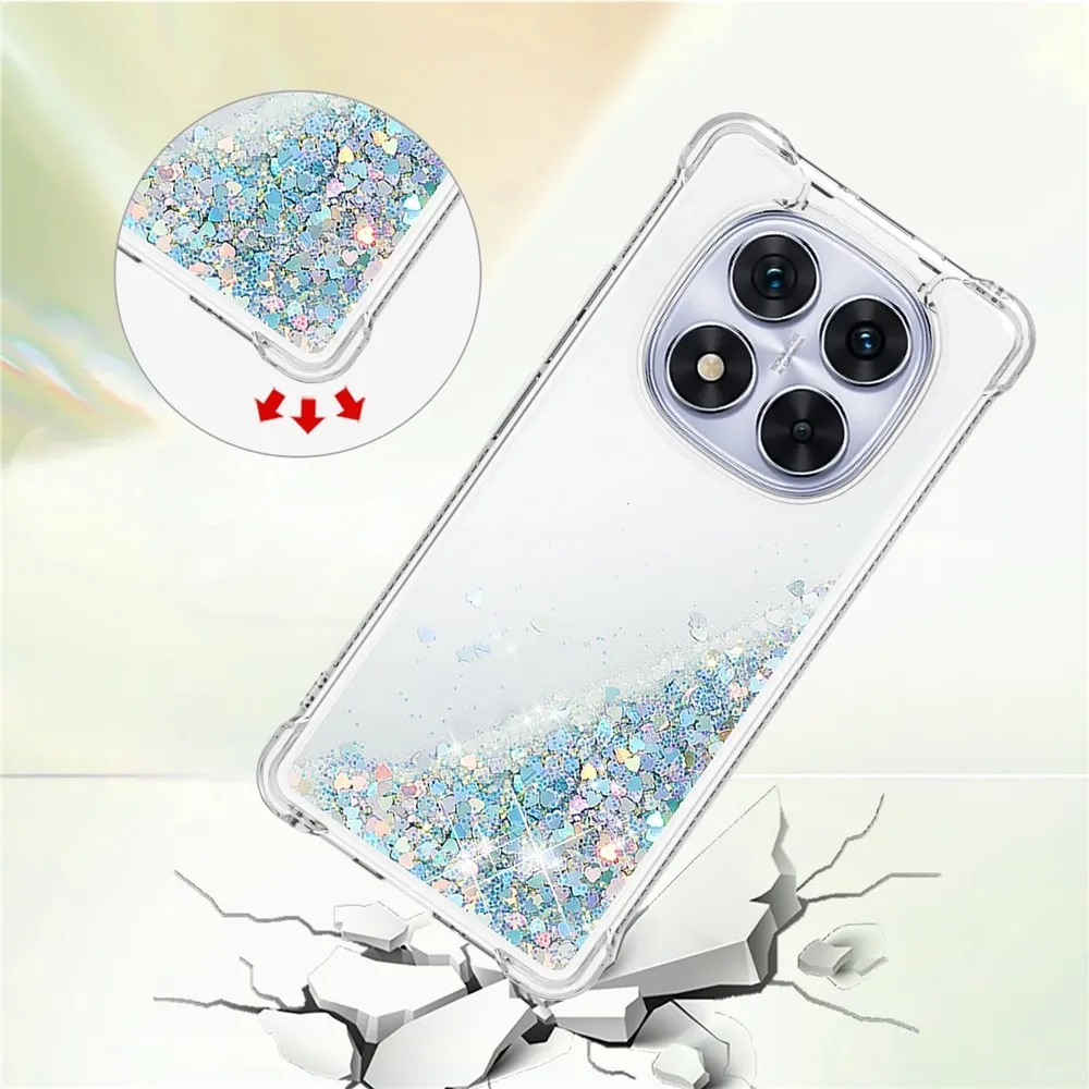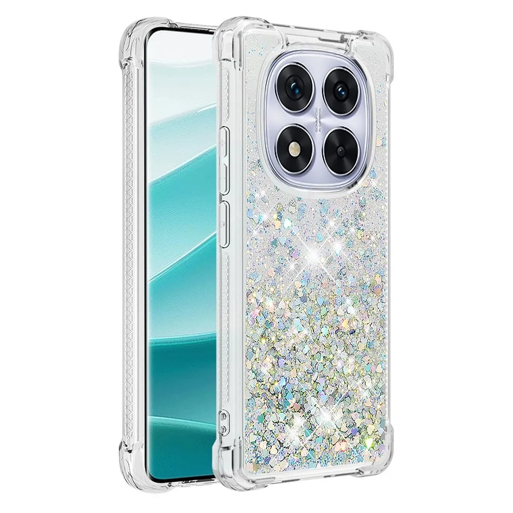 Glitter přesýpací gelový obal na Xiaomi Redmi Note 14 Pro 5G/Poco X7 5G - stříbrný/srdíčka