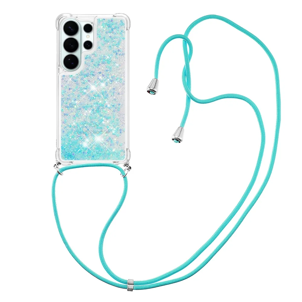 Glitters přesýpací gelový obal se šňůrkou na Samsung Galaxy S26 Ultra - modrý/hvězdičky