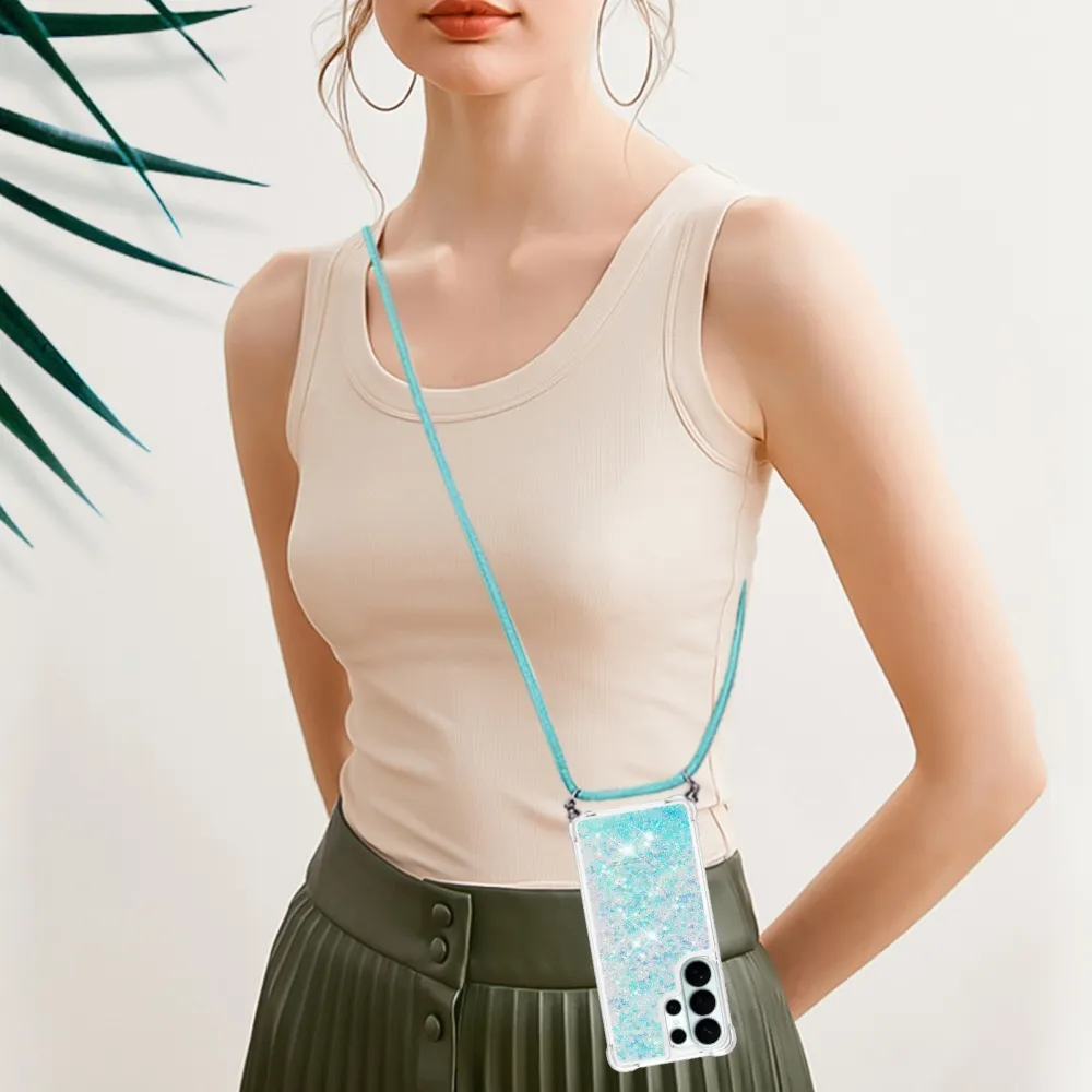 ✅【Vylepšená ochrana proti pádu】 Měkká TPU hrana obklopující pouzdro Glitters se šňůrkou na mobil Samsung Galaxy S26 Ultra - modré s hvězdičkami poskytuje vynikající ochranu proti pádu a prevenci pádu a zajišťuje, že váš telefon zůstane v bezpečí před náhodnými nárazy a každodenním opotřebením