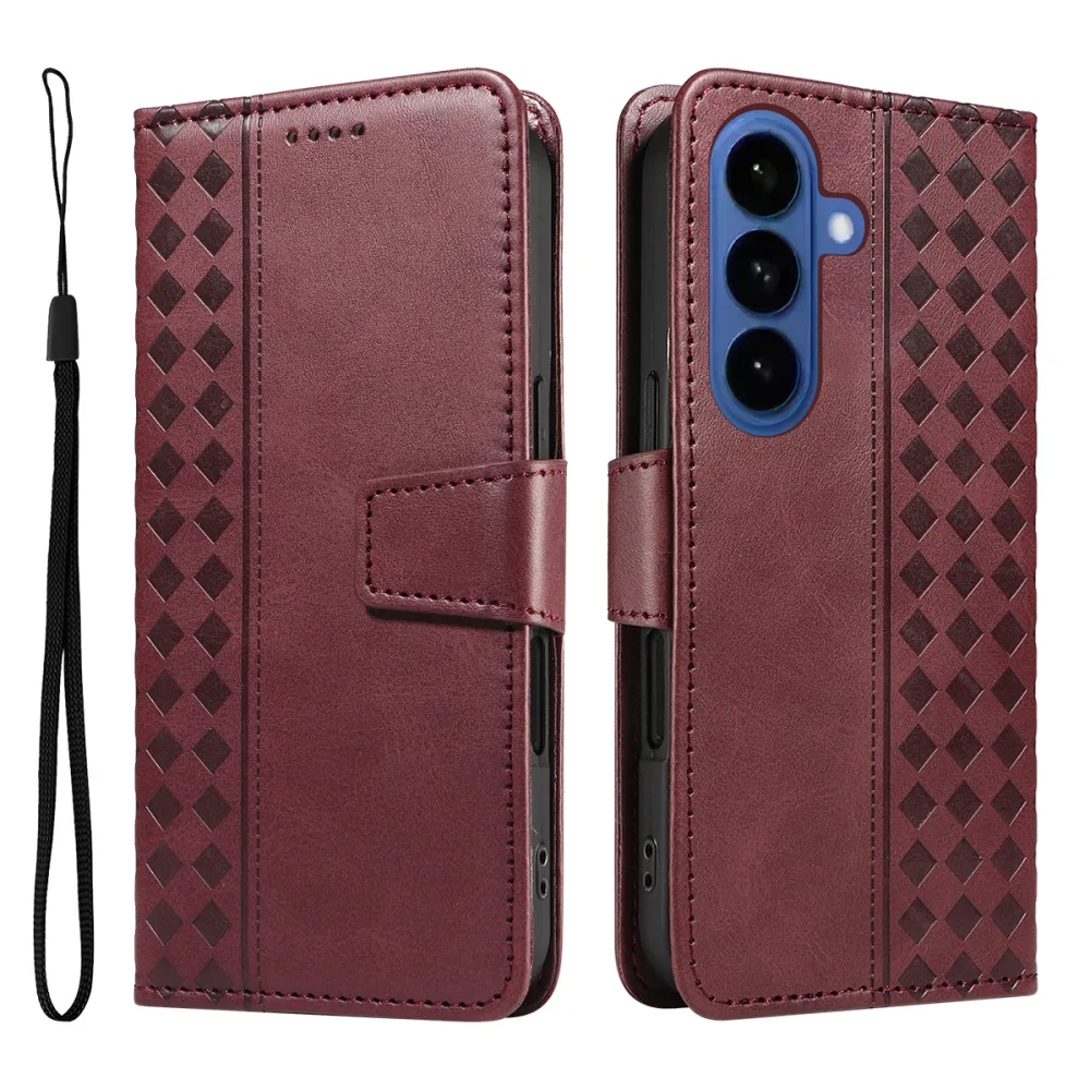 ✅【Stylový kosočtvercový design a prémiový materiál】Toto pouzdro Gridy ve vínové barvě na mobil Samsung Galaxy S26/S26 Pro s potiskem kosočtvercového vzoru je vyrobeno z vysoce kvalitní PU kůže a odolného TPU, což kombinuje luxusní vzhled s dlouhou životností.