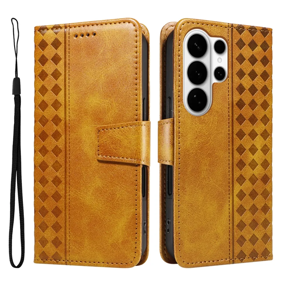 ✅【Stylový kosočtvercový design a prémiový materiál】Toto pouzdro Gridy ve žluté barvě na mobil Samsung Galaxy S26 Ultra s potiskem kosočtvercového vzoru je vyrobeno z vysoce kvalitní PU kůže a odolného TPU, což kombinuje luxusní vzhled s dlouhou životností.