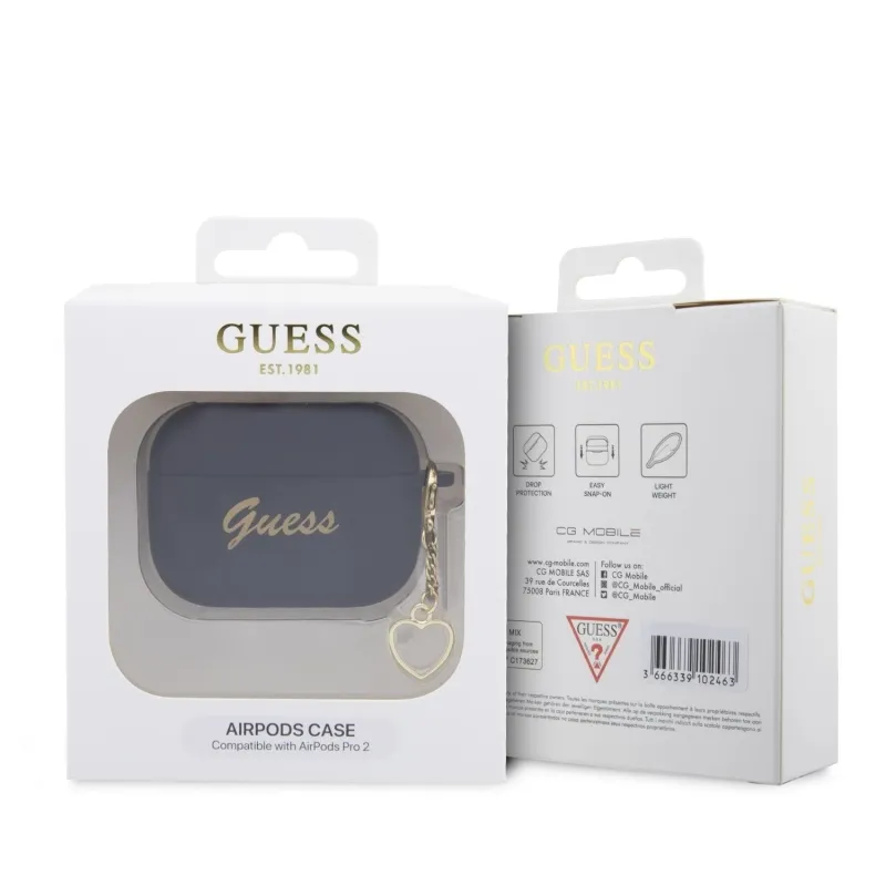 Guess 4G Charms Heart Silikonové Pouzdro pro Airpods Pro 2 Black