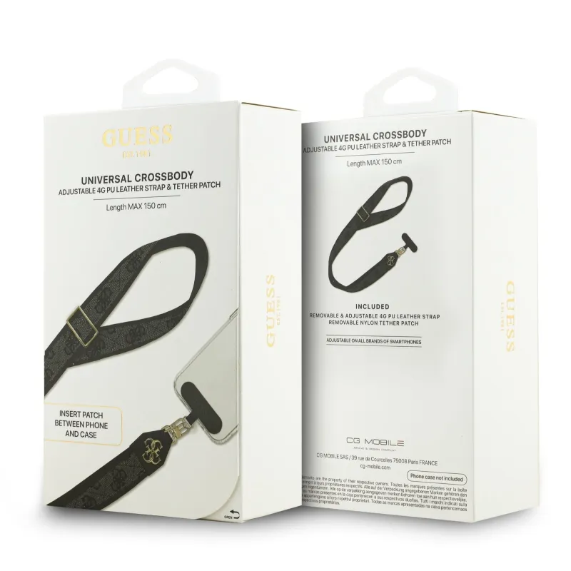 Styl doplňuje viditelné 4G logo Guess a luxusně působící zlaté kovové detaily, které dodávají popruhu prémiový vzhled.