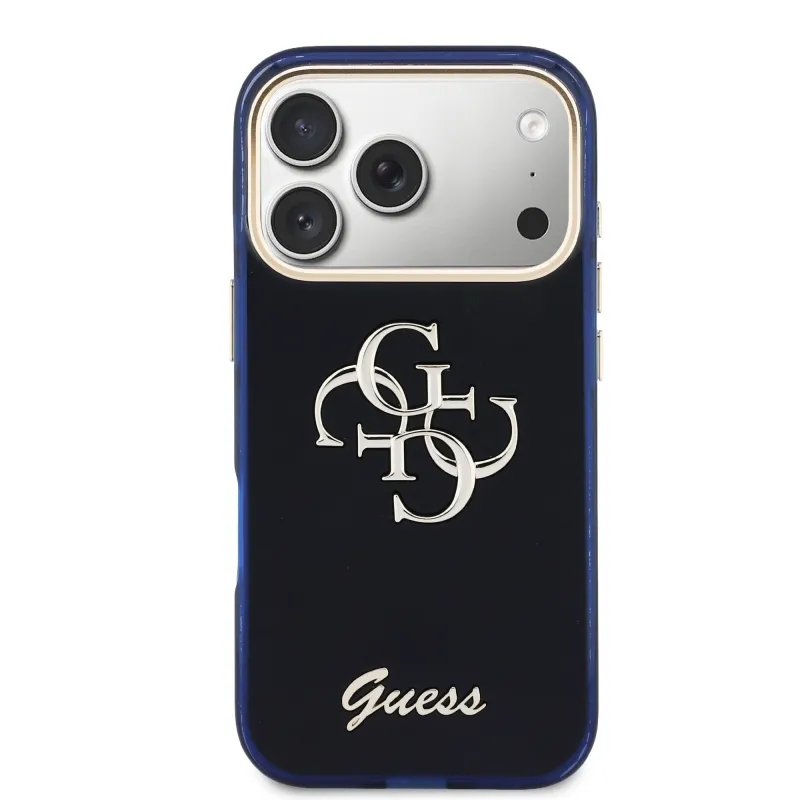 Guess IML 4G Script Metal Logo Zadní Kryt pro iPhone 17 Pro Blue