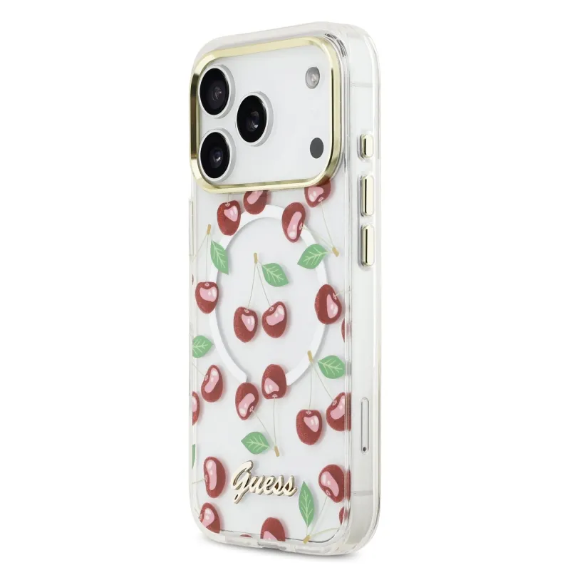 Guess IML Glitter Cherry MagSafe Zadní Kryt pro iPhone 17 Pro
