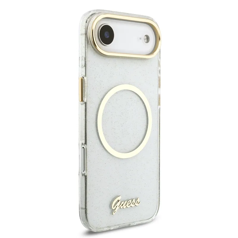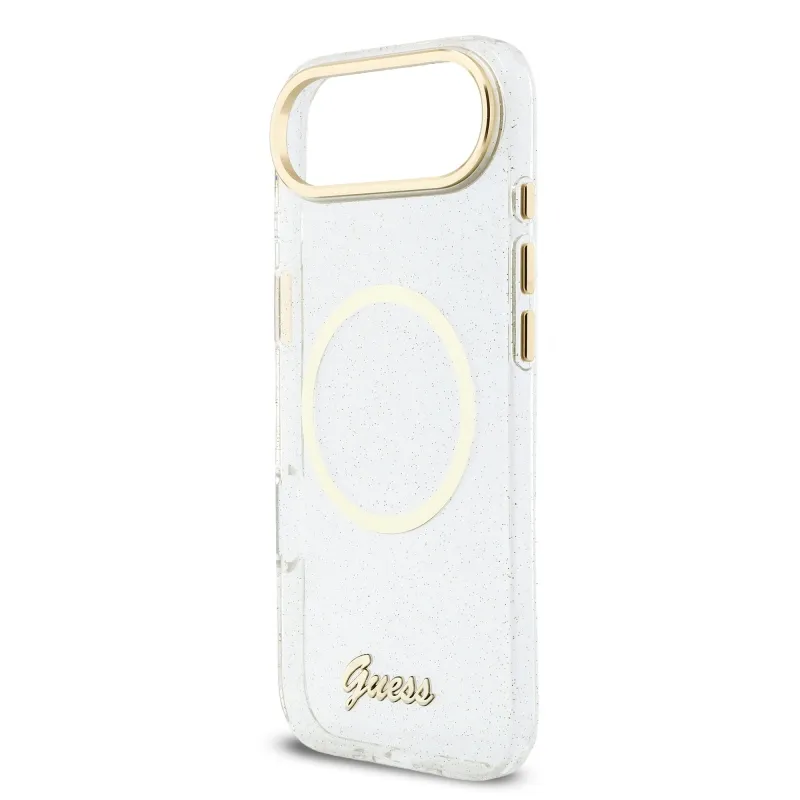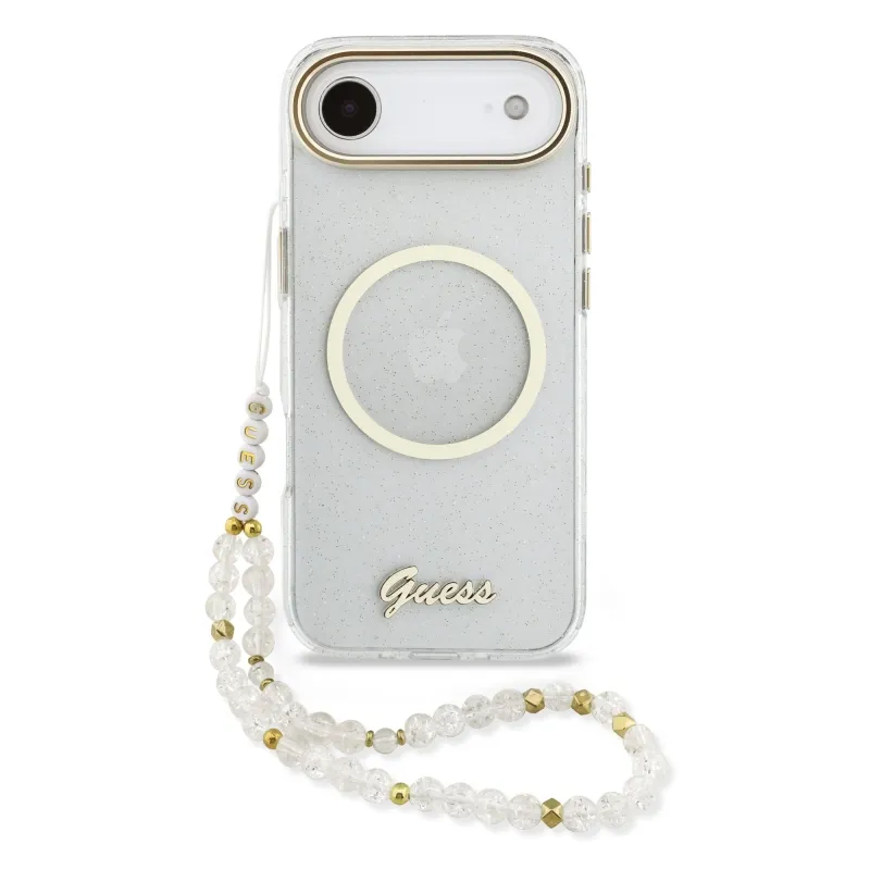 Guess IML Glitter Script Strap MagSafe Zadní Kryt pro iPhone Air Transparent