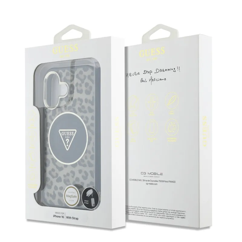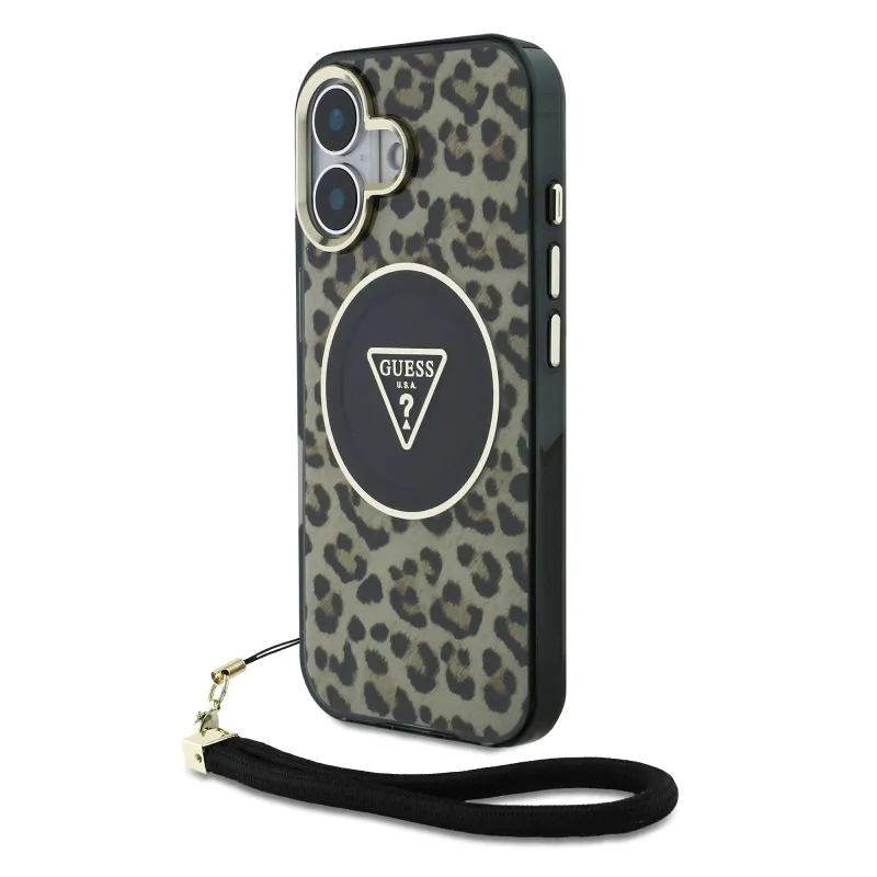 Guess IML Leopard Triangle Logo Strap MagSafe zadní kryt na telefon je skvělým doplňkem pro všechny milovníky stylu a praktičnosti.