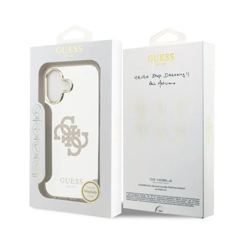 Guess PC/TPU Mirror 4G Glitter Logo MagSafe zadní kryt je dokonalý doplněk pro váš telefon i váš outfit, který kombinuje funkčnost a styl v jednom.