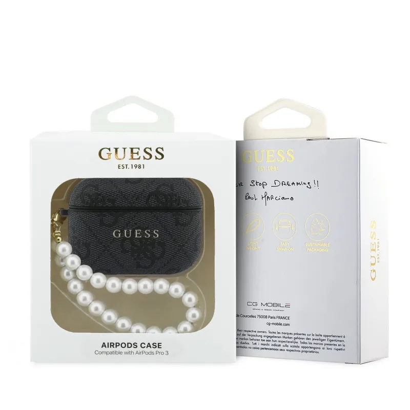 Guess PU 4G Classic Logo Pearl Strap Pouzdro pro AirPods Pro 3 Black