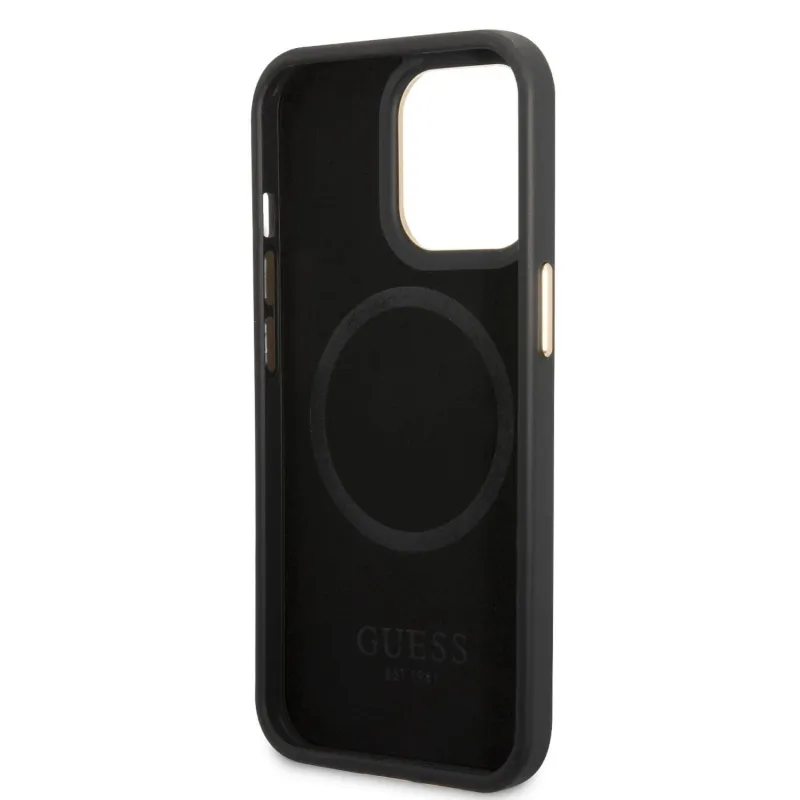 Guess PU 4G MagSafe Kompatibilní Zadní Kryt pro iPhone 13 Pro Black