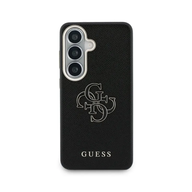 Guess PU 4G Resin Metal Logo Zadní Kryt pro Samsung Galaxy S26+ Black