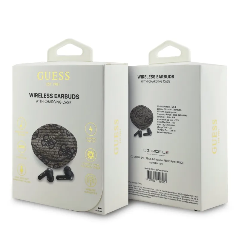 • Stylové nabíjecí pouzdro: Elegantní nabíjecí pouzdro s logem Guess nejen chrání sluchátka, ale také je udržuje plně nabitá. Pouzdro je kompaktní a snadno se vejde do kapsy nebo tašky.