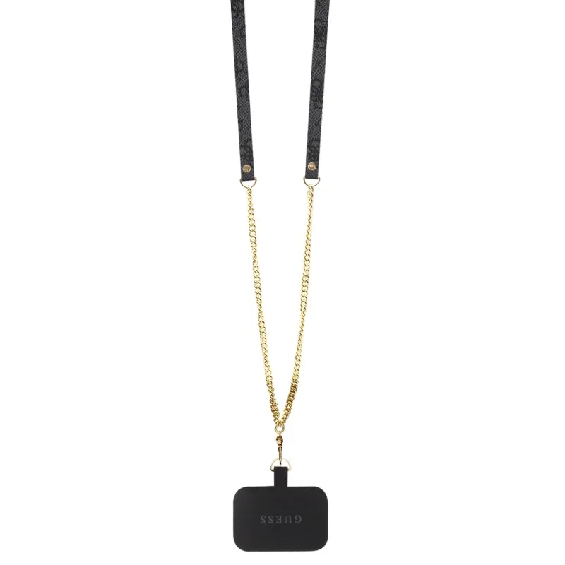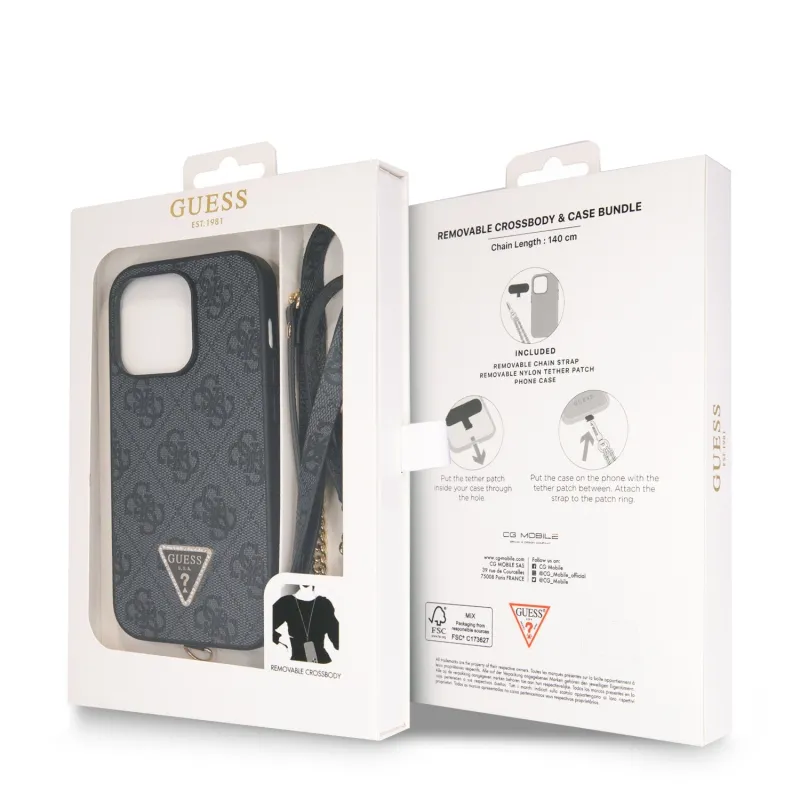 Guess PU 4G Strass Triangle Metal Logo Zadní Kryt + Crossbody Popruh pro iPhone 15 Pro Max Black