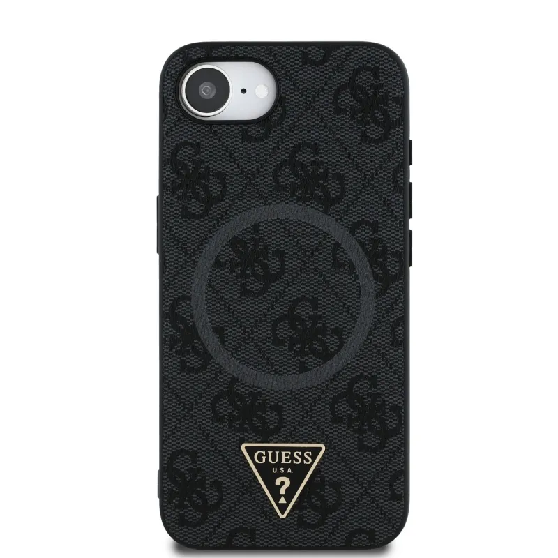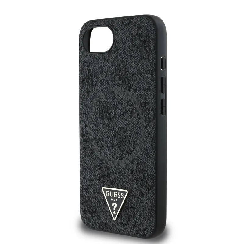 Guess PU 4G Strass Triangle Metal Logo Zadní Kryt pro iPhone SE4 Black