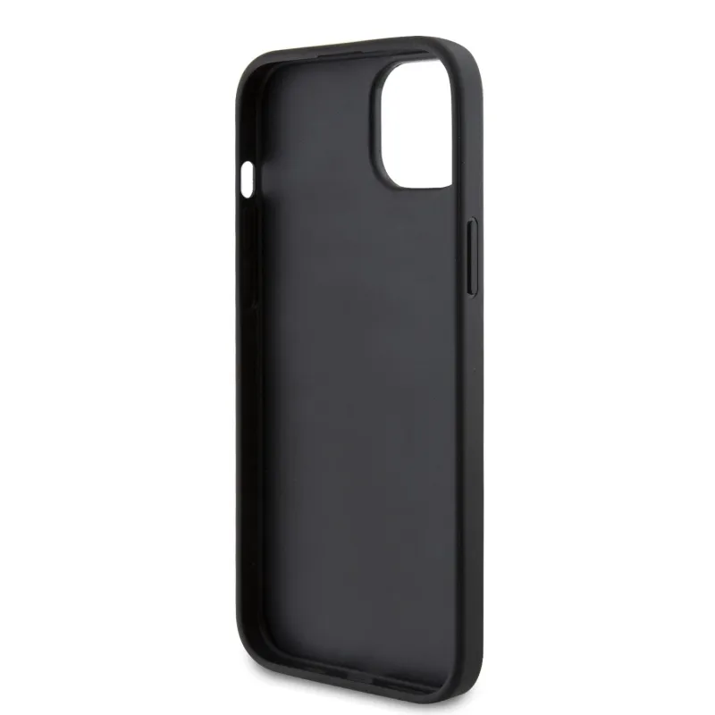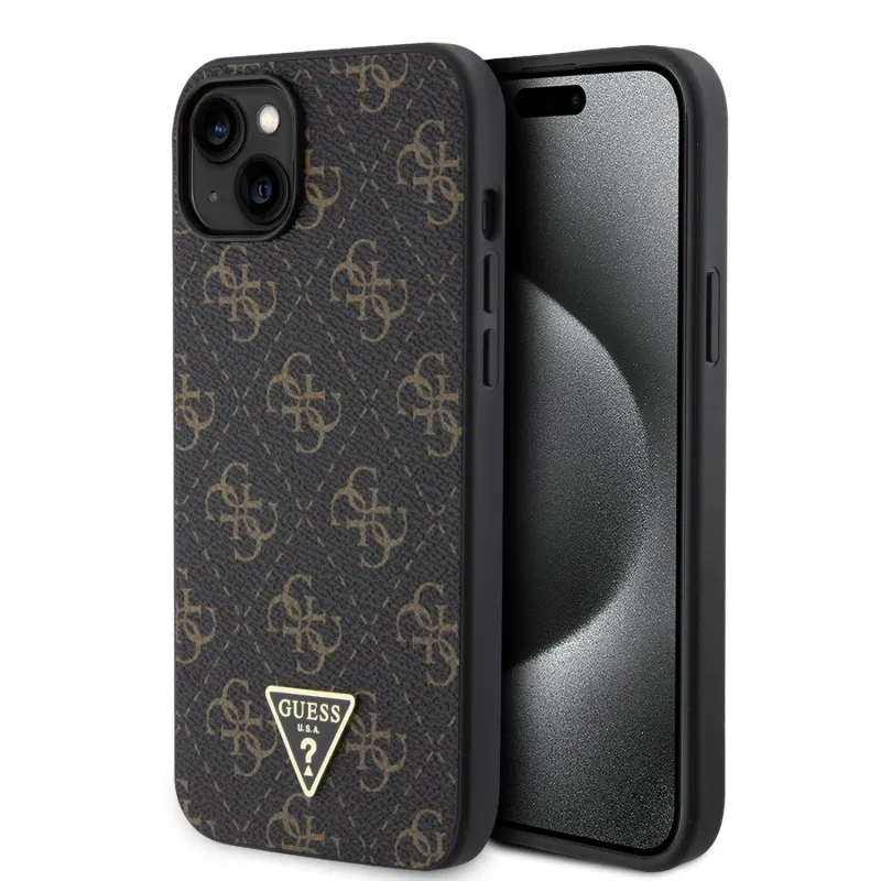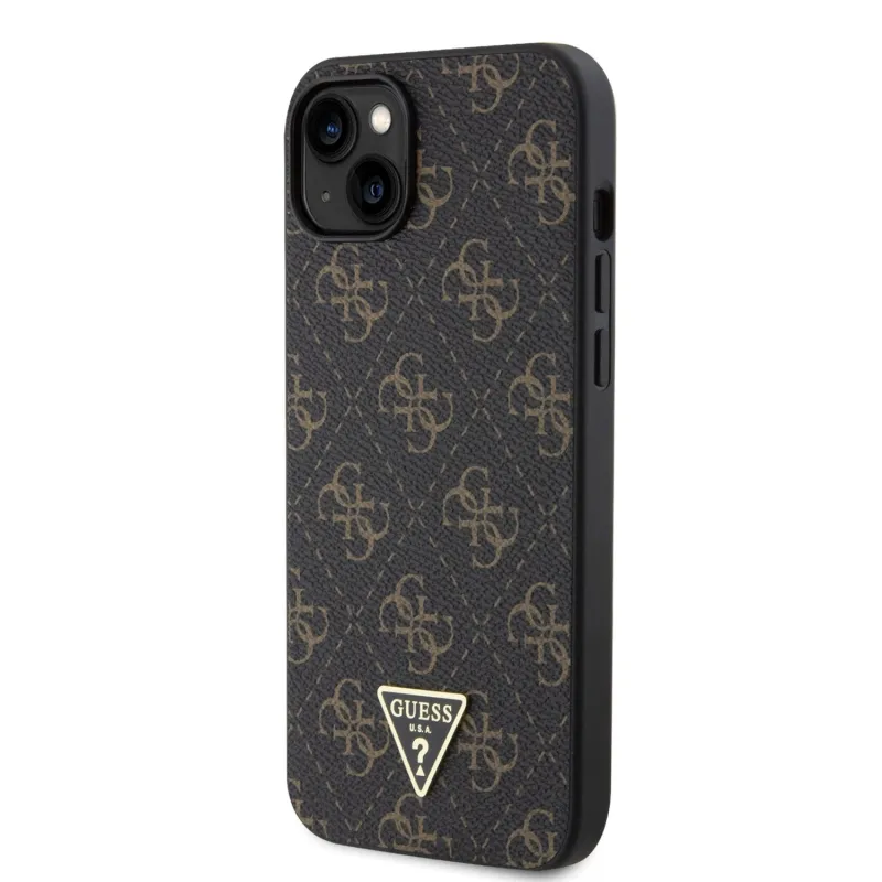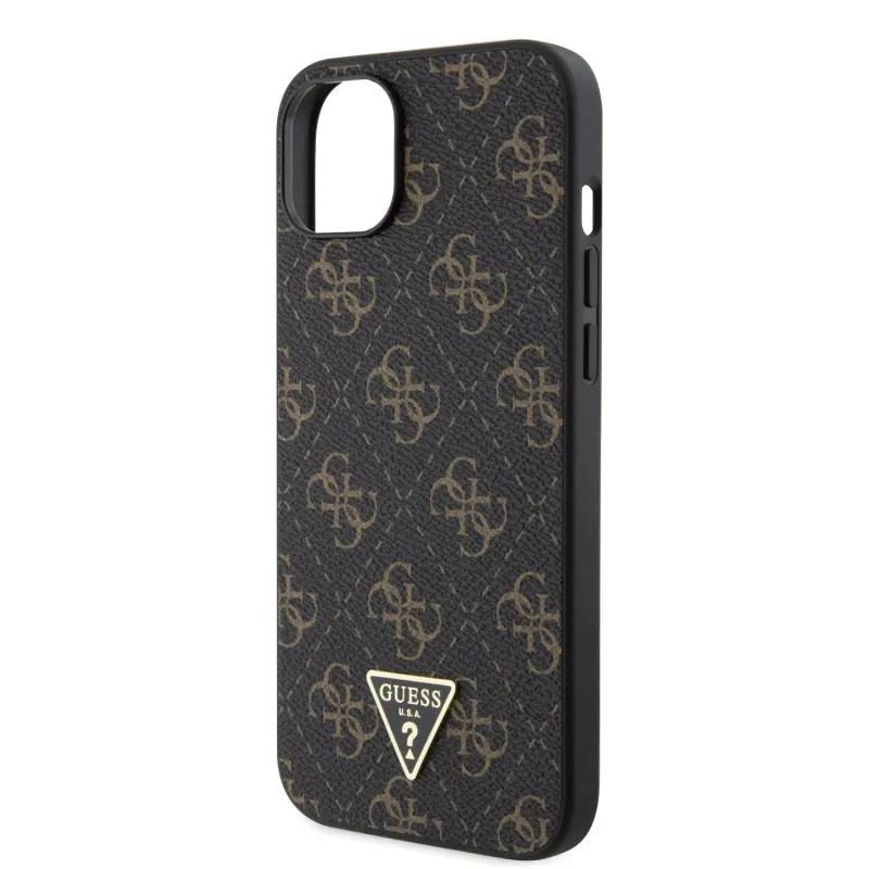 Guess PU 4G Triangle Metal Logo Zadní Kryt pro iPhone 15 Plus Black