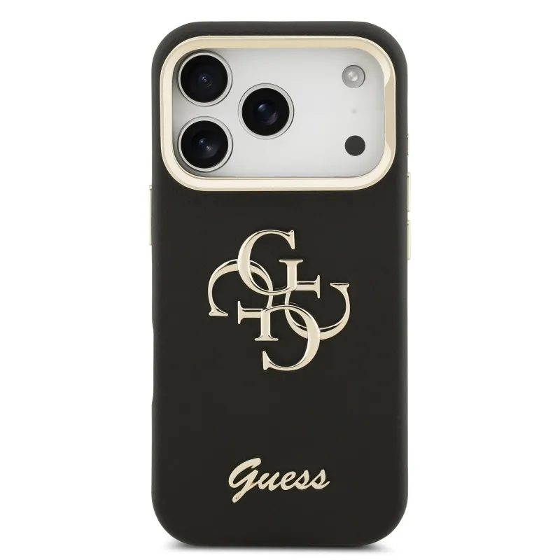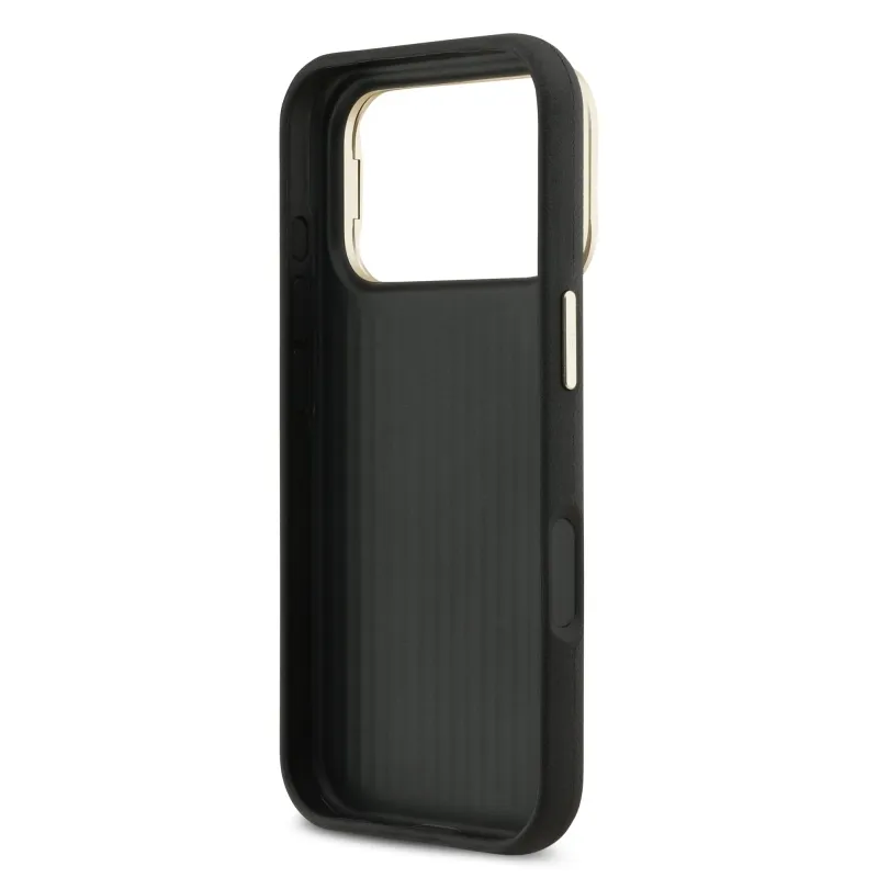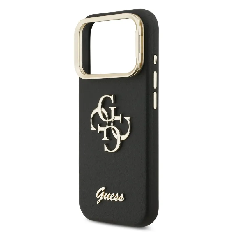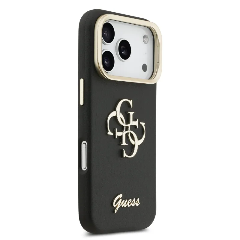 Guess PU Grained 4G Logo Stand Camera Frame Zadní Kryt pro iPhone 17 Pro Black