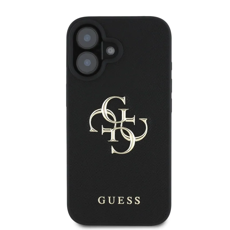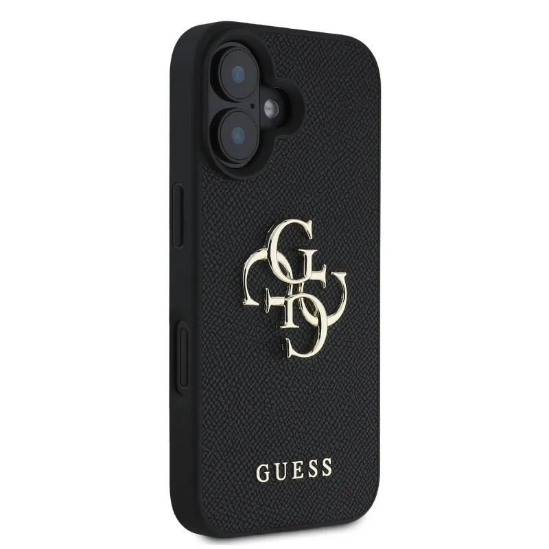 Guess PU Grained 4G Metal Logo Zadní Kryt pro iPhone 16 Black