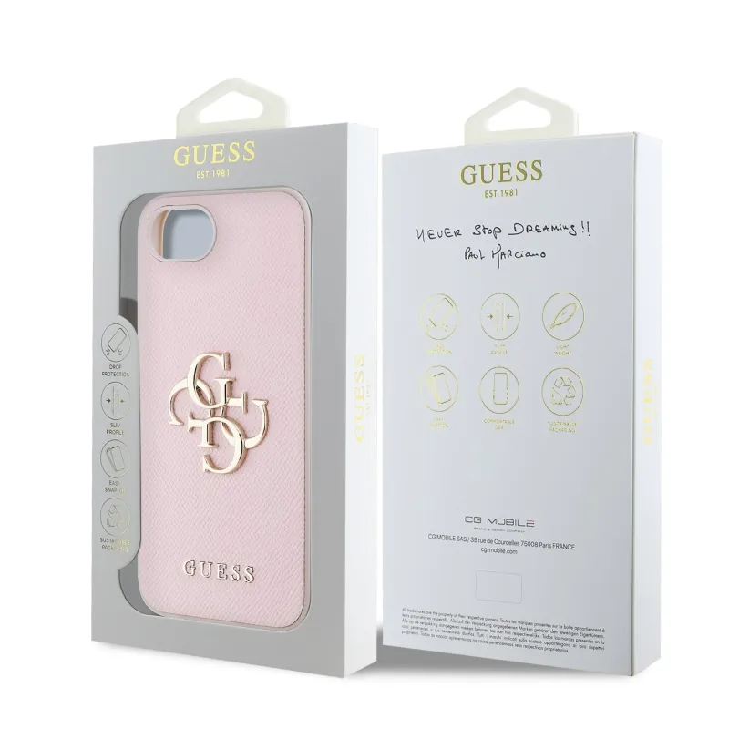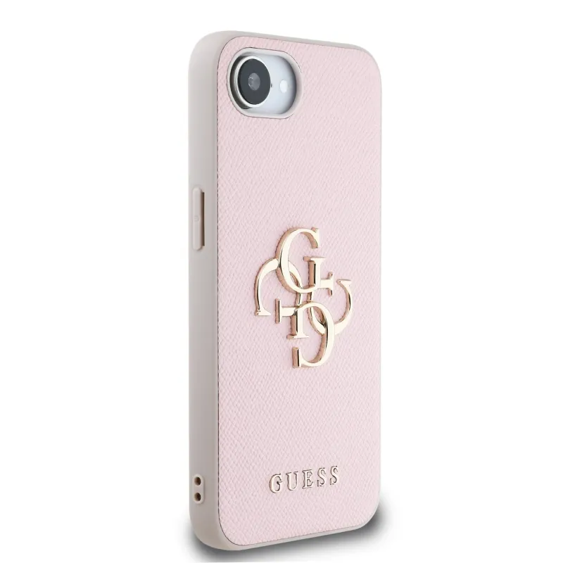 Guess PU Grained 4G Metal Logo Zadní Kryt pro iPhone SE4 Pink