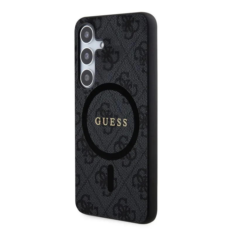 Guess PU Leather 4G Colored Ring MagSafe Zadní Kryt pro Samsung Galaxy S24 Black