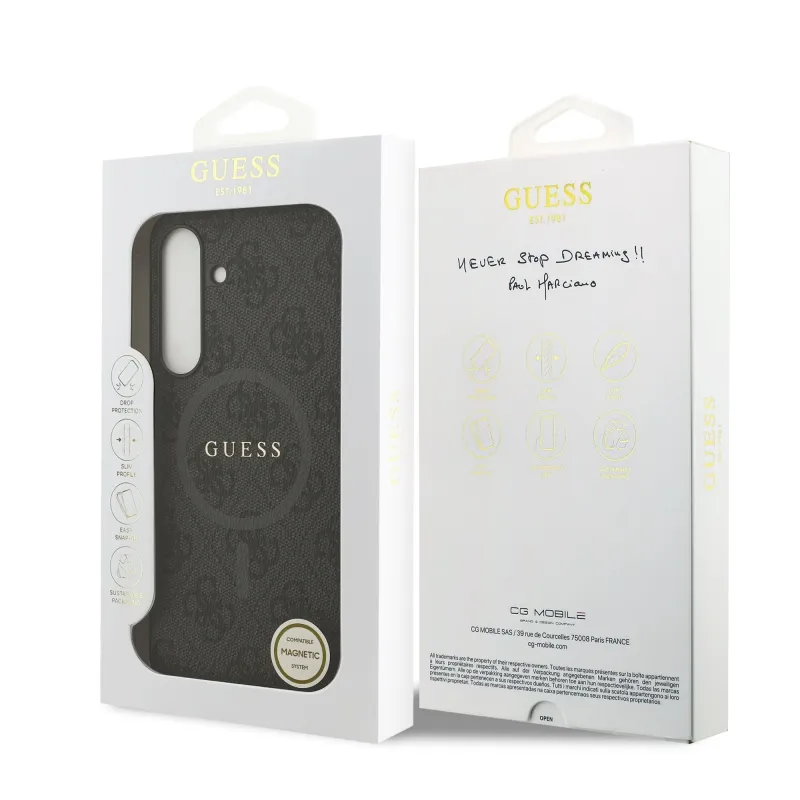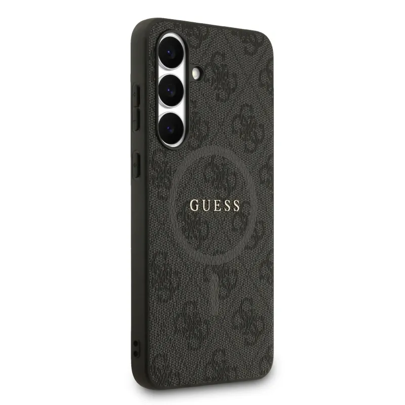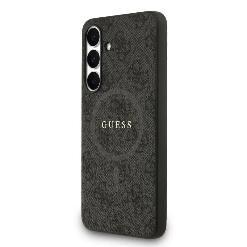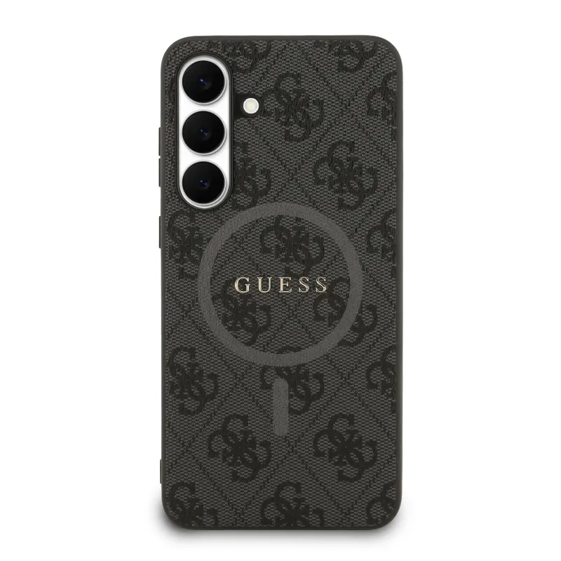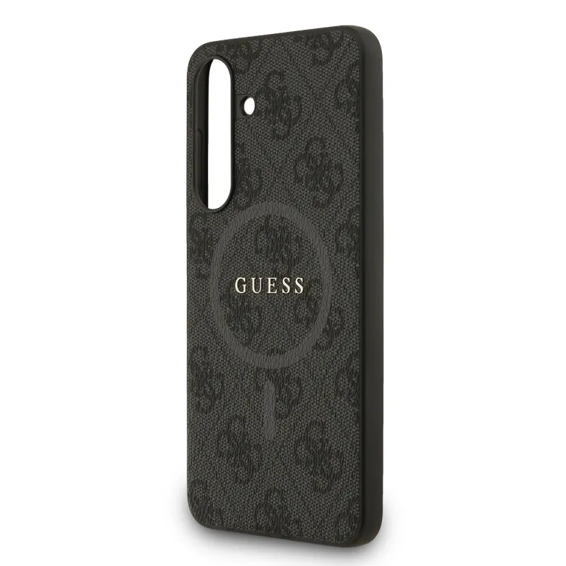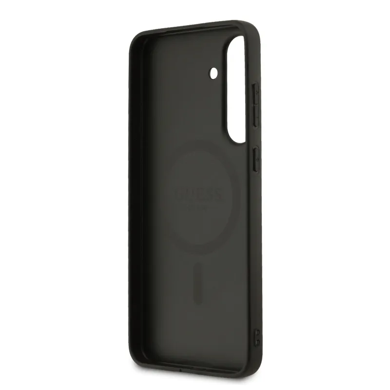 Guess PU Leather 4G Colored Ring MagSafe Zadní Kryt pro Samsung Galaxy S25 FE Black