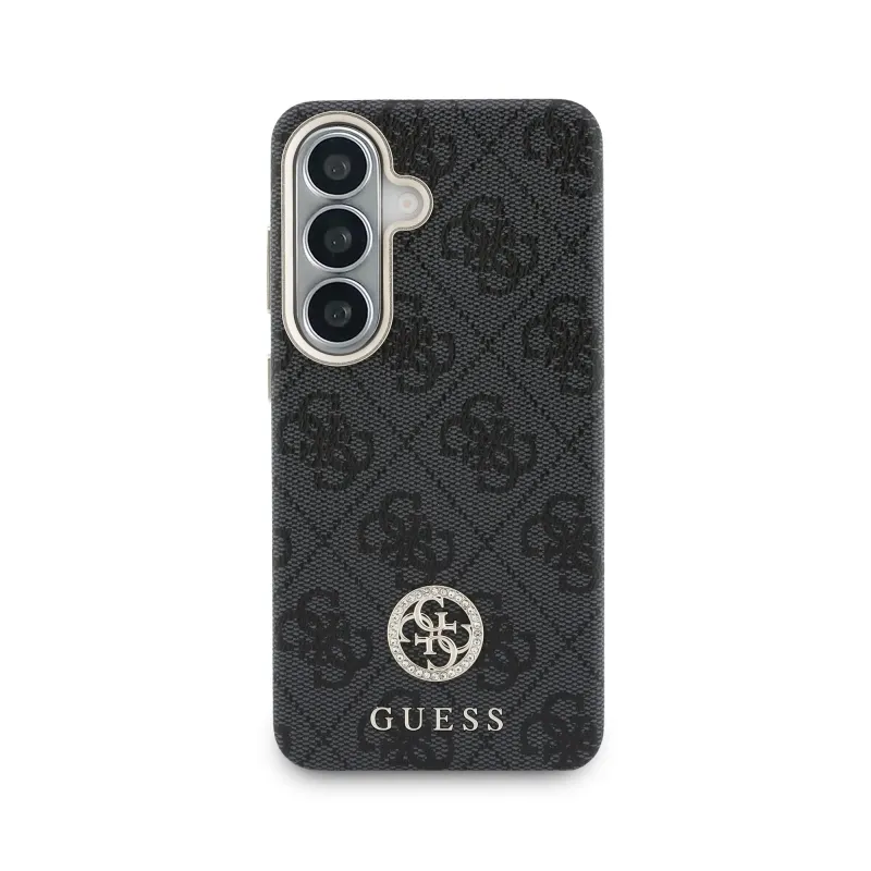 Guess PU Leather 4G Strass Logo Gold Frame Magnetic Zadní Kryt pro Samsung Galaxy S26 Black