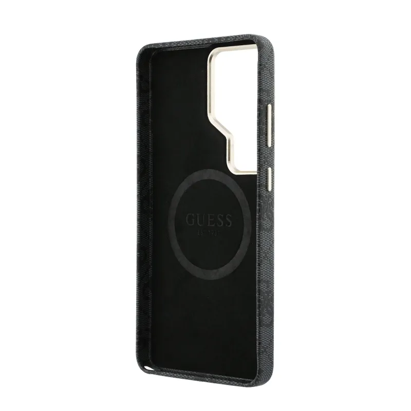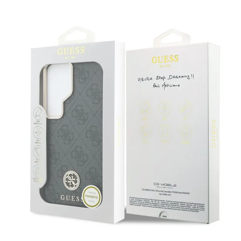 Guess PU Leather 4G Strass Logo Gold Frame Magnetic Zadní Kryt pro Samsung Galaxy S26 Ultra Black