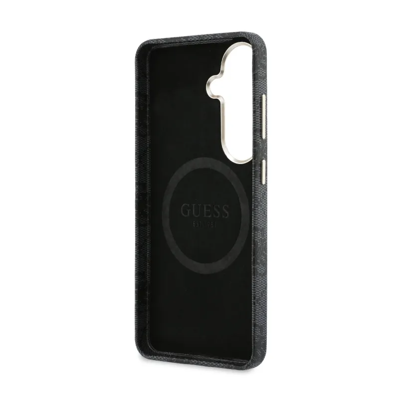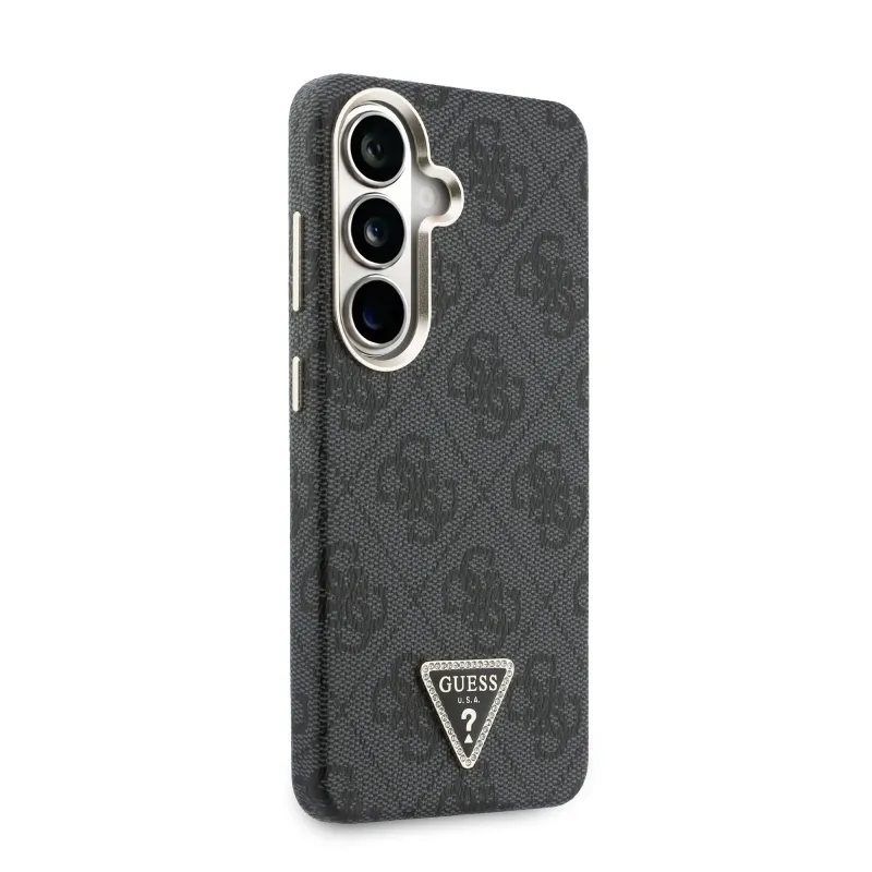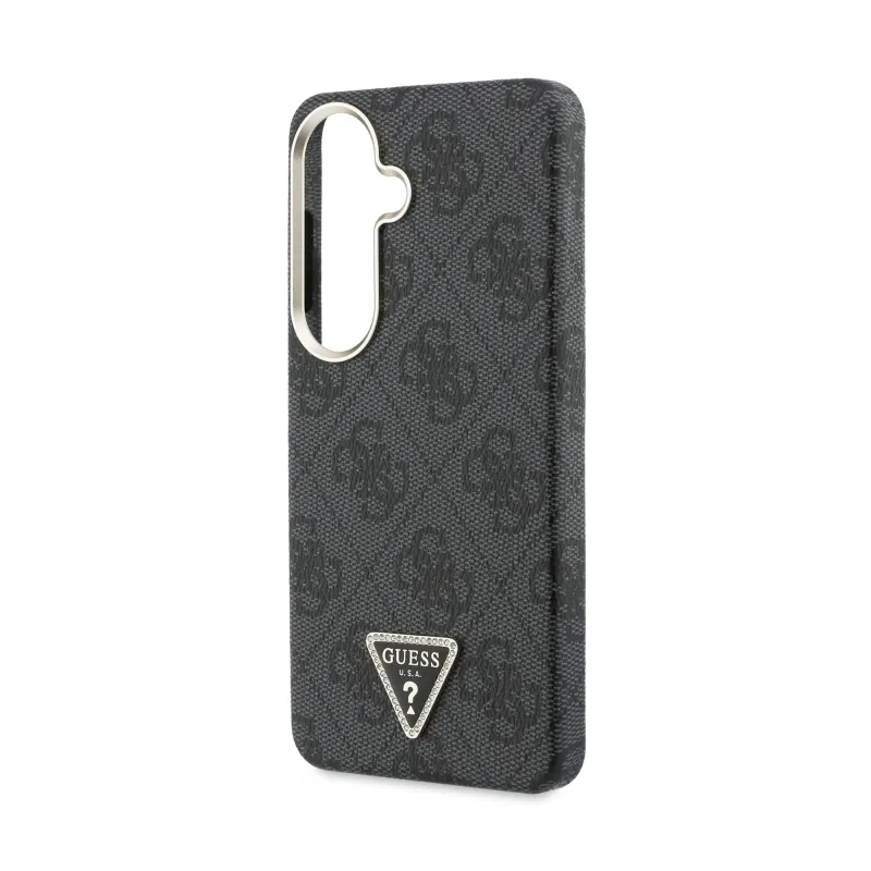 Guess PU Leather 4G Strass Triangle Logo Gold Frame Magnetic Zadní Kryt pro Samsung Galaxy S26 Black