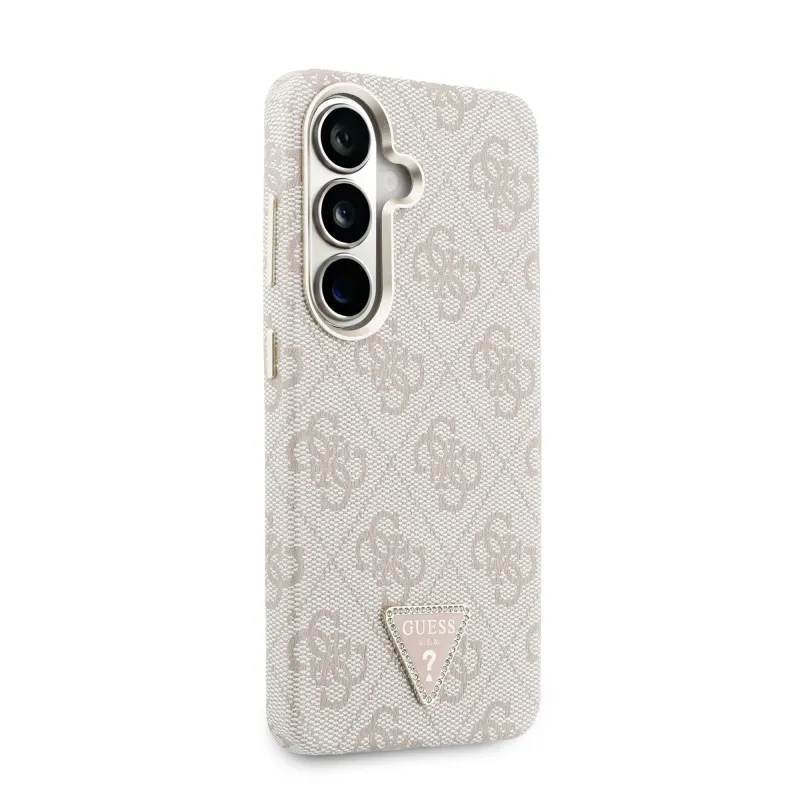 Guess PU Leather 4G Strass Triangle Logo Gold Frame Magnetic Zadní Kryt pro Samsung Galaxy S26 Pink