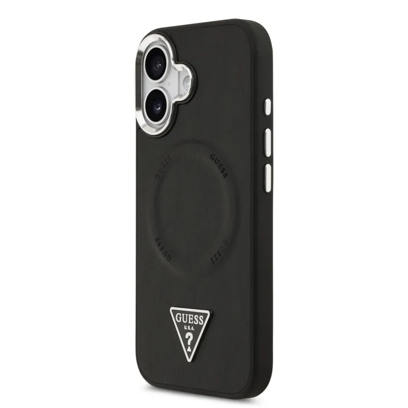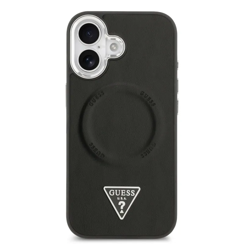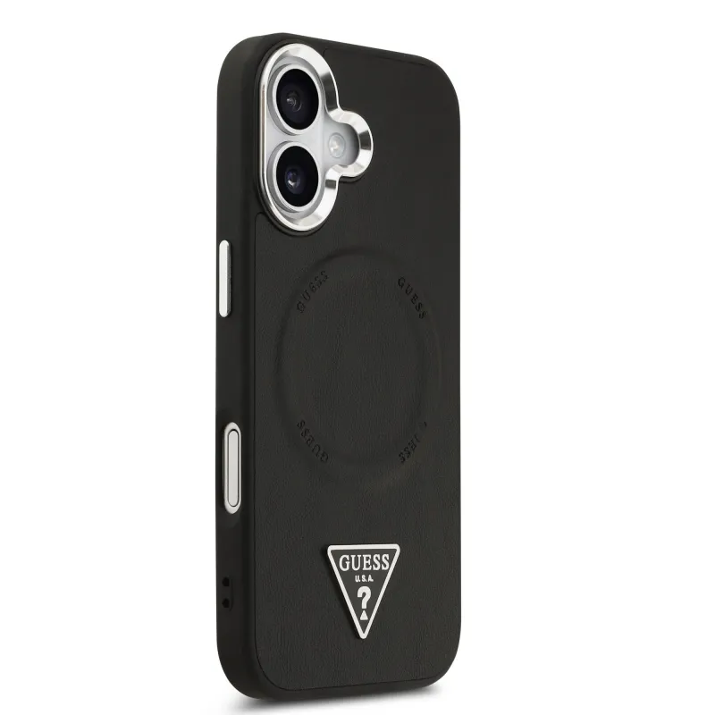 Guess PU Leather Triangle Logo MagSafe Zadní Kryt pro iPhone 17 Black