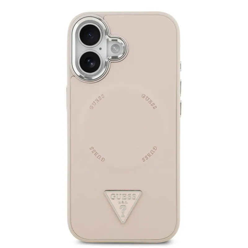 Guess PU Leather Triangle Logo MagSafe Zadní Kryt pro iPhone 17 Pink
