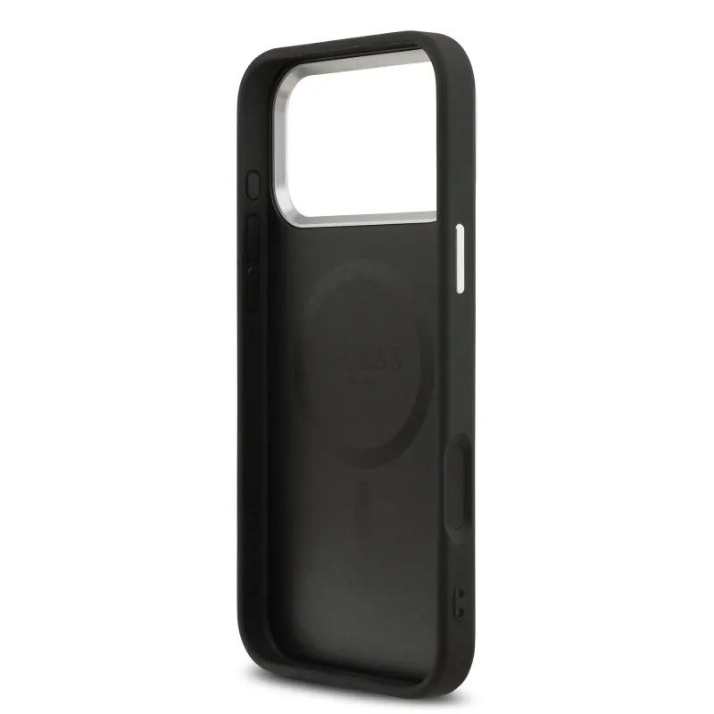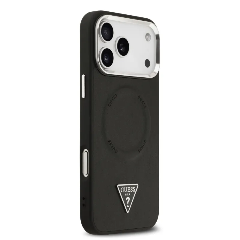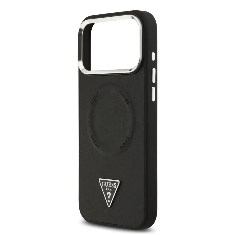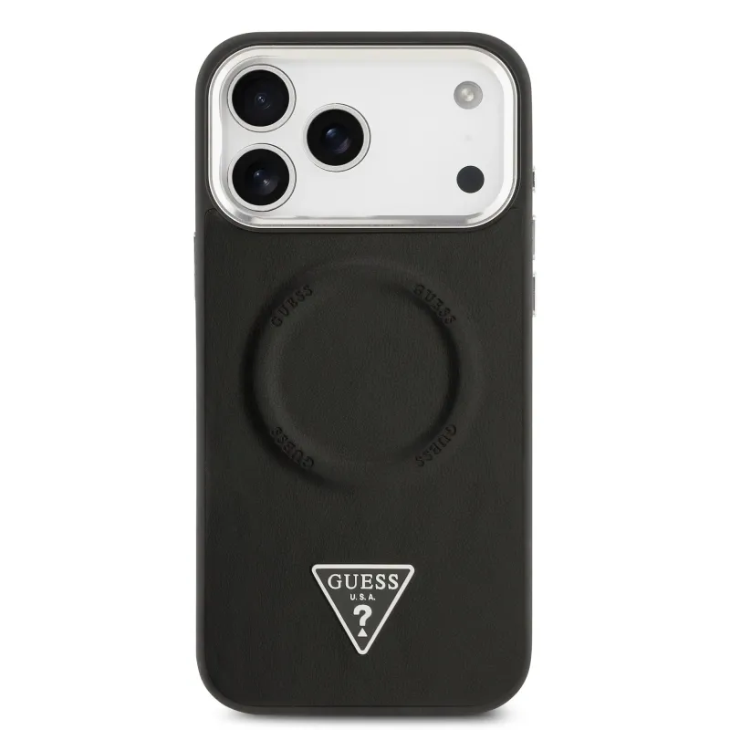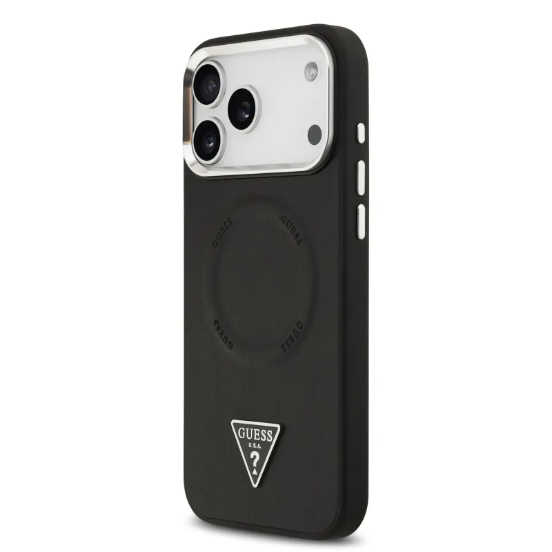 Guess PU Leather Triangle Logo MagSafe Zadní Kryt pro iPhone 17 Pro Black