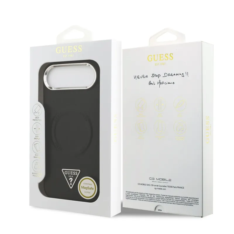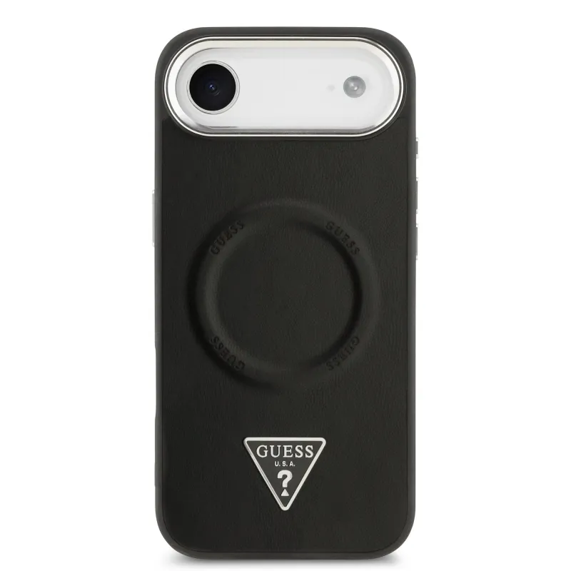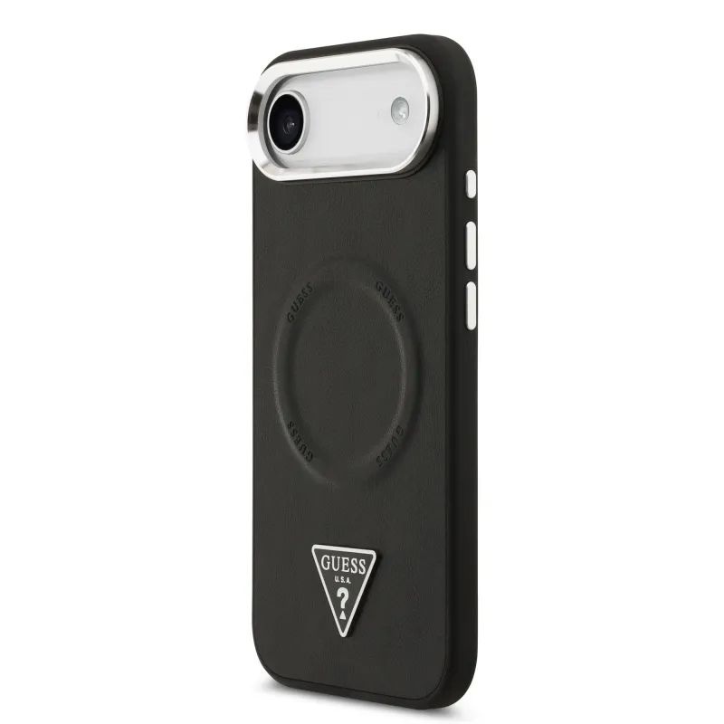 Guess PU Leather Triangle Logo MagSafe Zadní Kryt pro iPhone Air Black