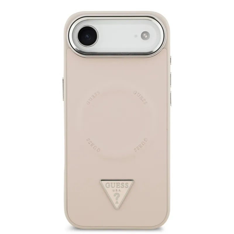 Guess PU Leather Triangle Logo MagSafe Zadní Kryt pro iPhone Air Pink
