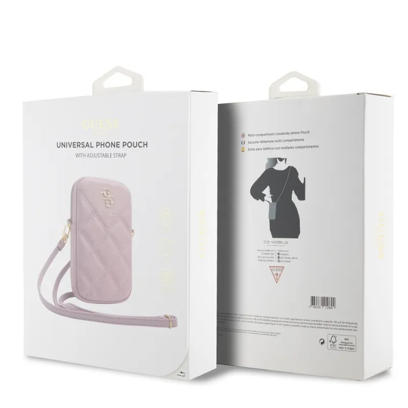 Guess PU Quilted 4G Metal Logo Taška na Telefon se Zipem Pink