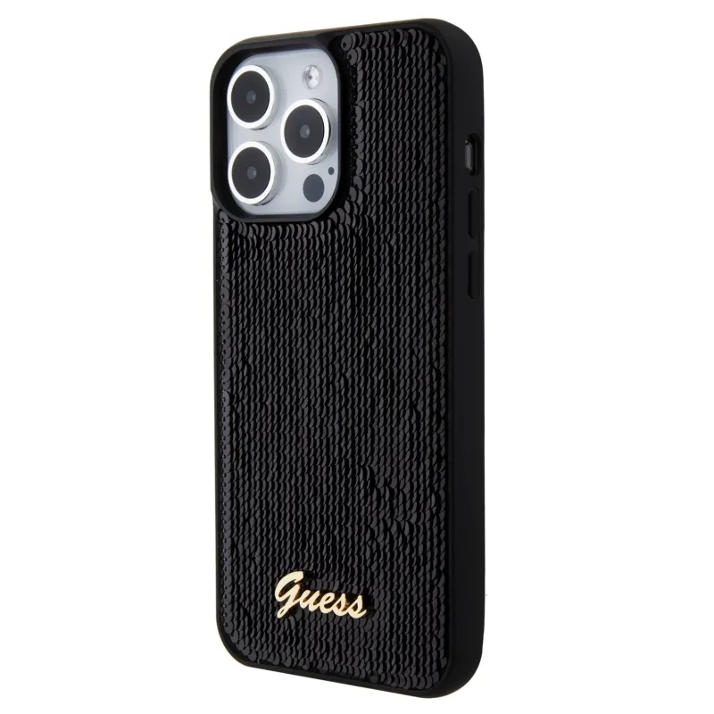 Guess Sequin Script Logo Zadní Kryt pro iPhone 15 Pro Black