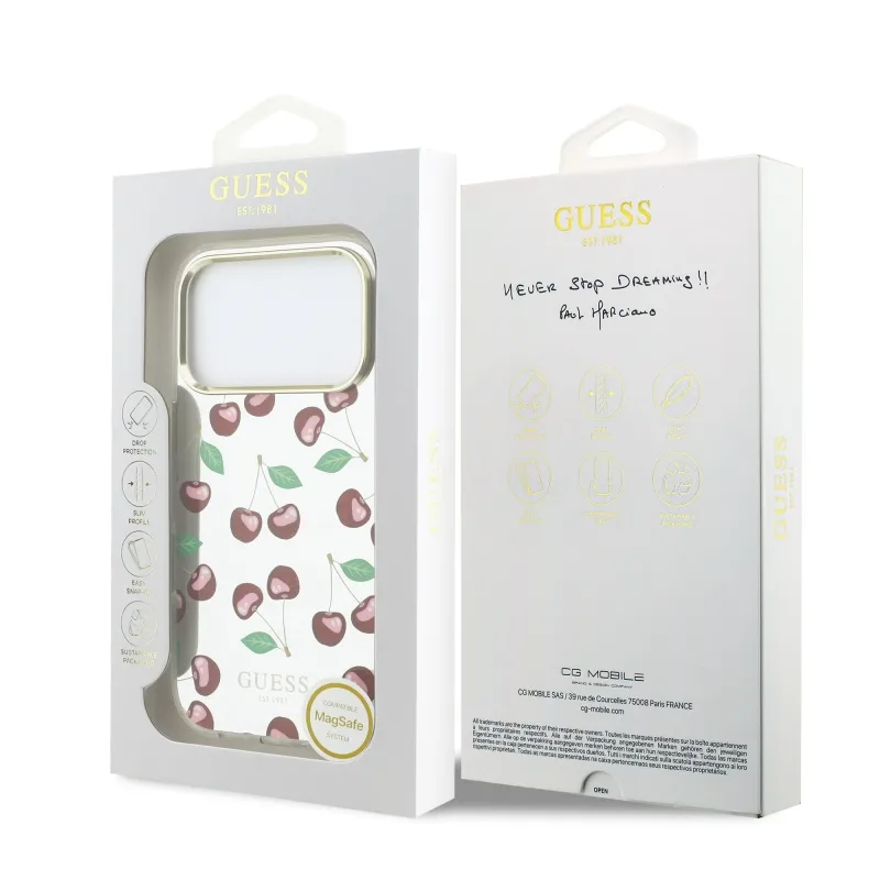 Guess TPU Glitter Cherry MagSafe zadní kryt je dokonalý doplněk pro váš telefon i váš outfit, který kombinuje funkčnost a styl v jednom.