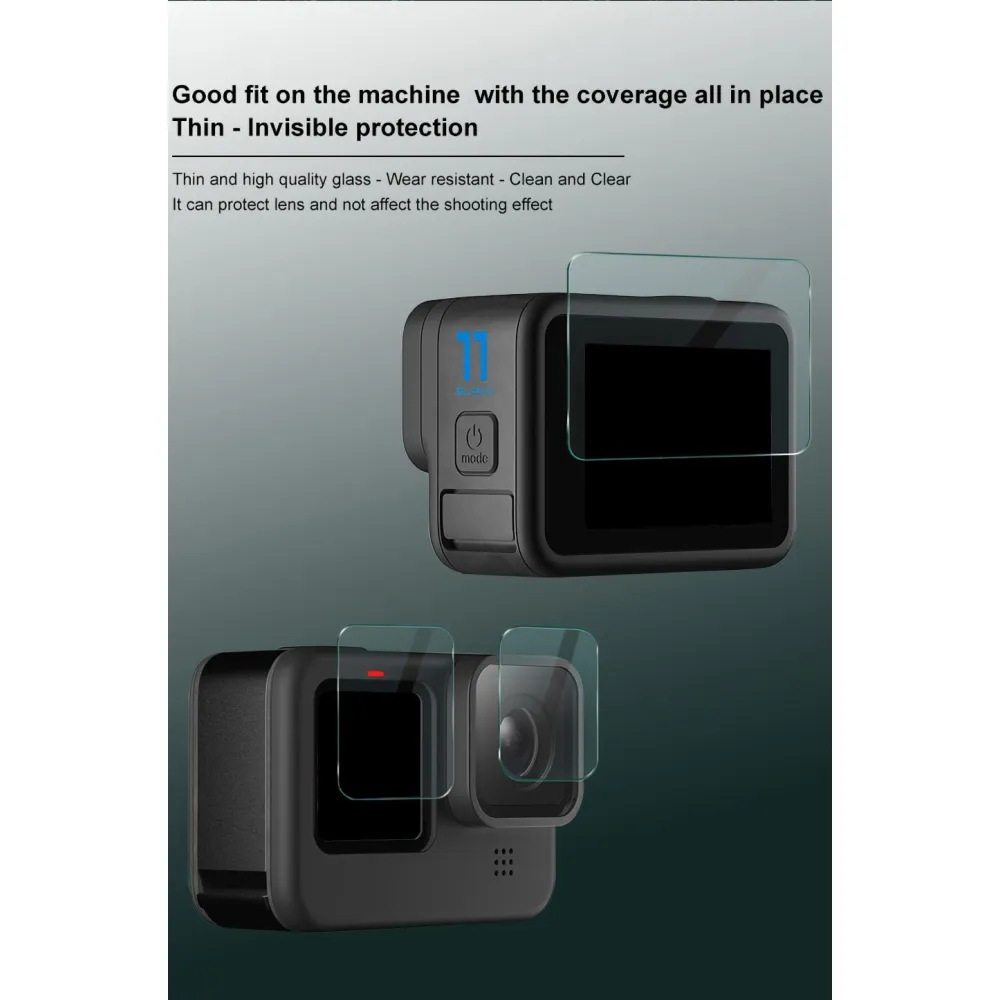 Typ příslušenství: sada tvrzených ochranných skel Materiál: tvrzené sklo Určení: přední displej, zadní displej, objektiv Vlastnosti: průhledné, tenké, odolné proti poškrábání Kompatibilita: GoPro Hero 11 Black