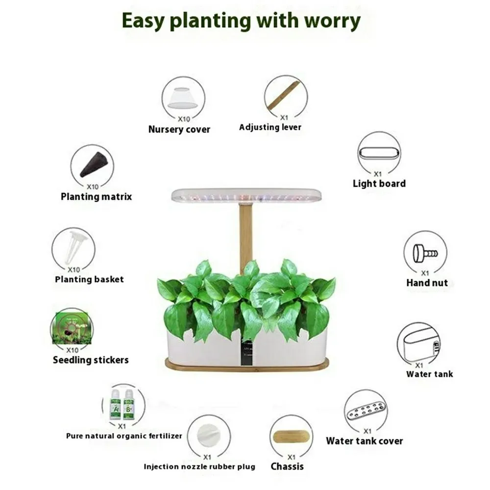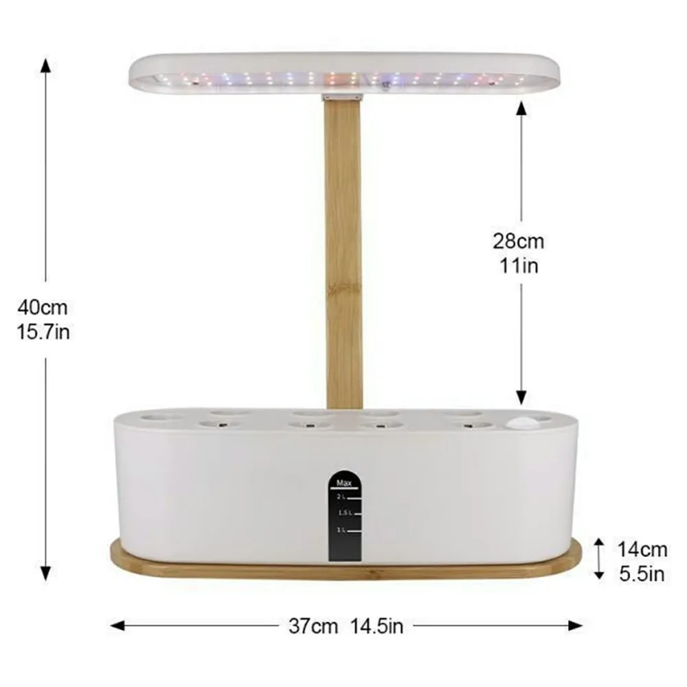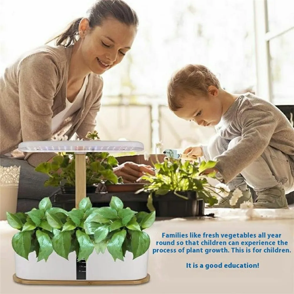 Moderní hydroponický pěstební systém s LED osvětlením přináší efektivní a čisté řešení pro domácí pěstování bylinek i menší zeleniny. Díky technologii pěstování bez hlíny rostliny přijímají živiny přímo z vodního roztoku, což podporuje jejich zdravý a rychlý růst. Integrované LED růstové světlo se speciálním spektrem zajišťuje optimální podmínky i při nedostatku přirozeného denního světla. Elegantní kombinace bambusu a ABS plastu dodává zařízení moderní vzhled vhodný do každé kuchyně nebo pracovního prostoru.
