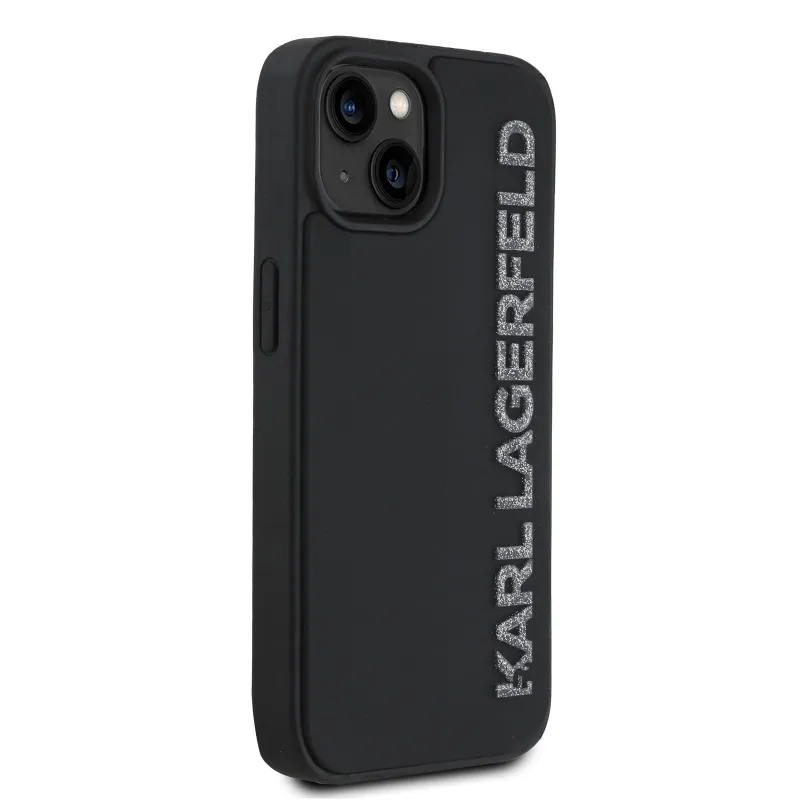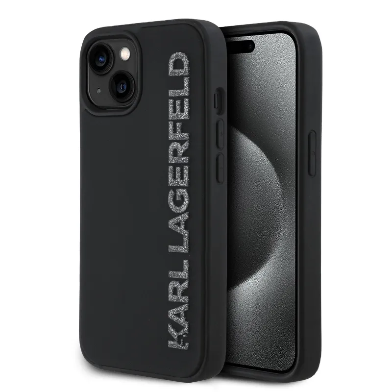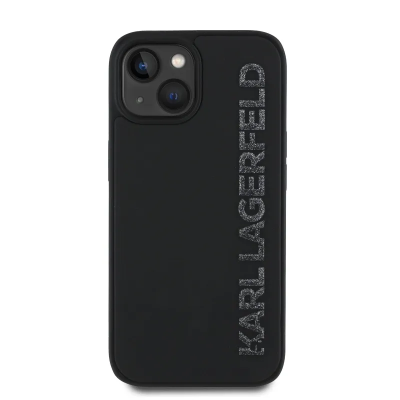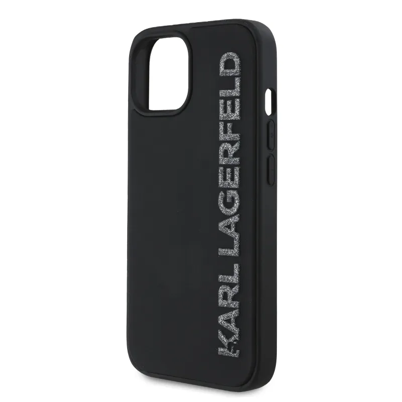 Karl Lagerfeld 3D Rubber Glitter Logo Zadní Kryt pro iPhone 14 Black