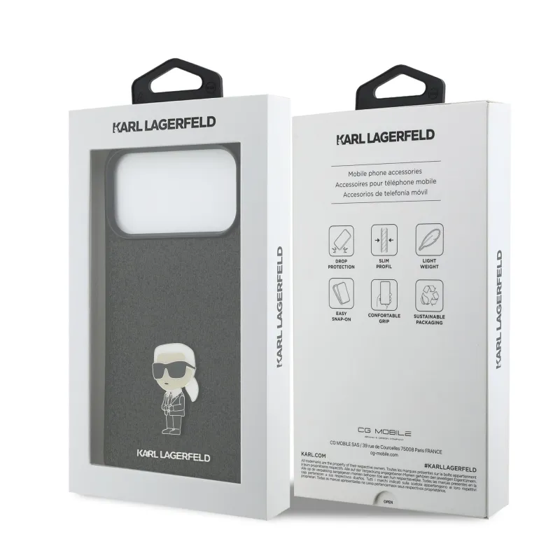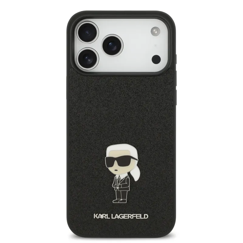 Karl Lagerfeld Fixed Glitter Metal Ikonik Zadní Kryt pro iPhone 17 Pro Max Black