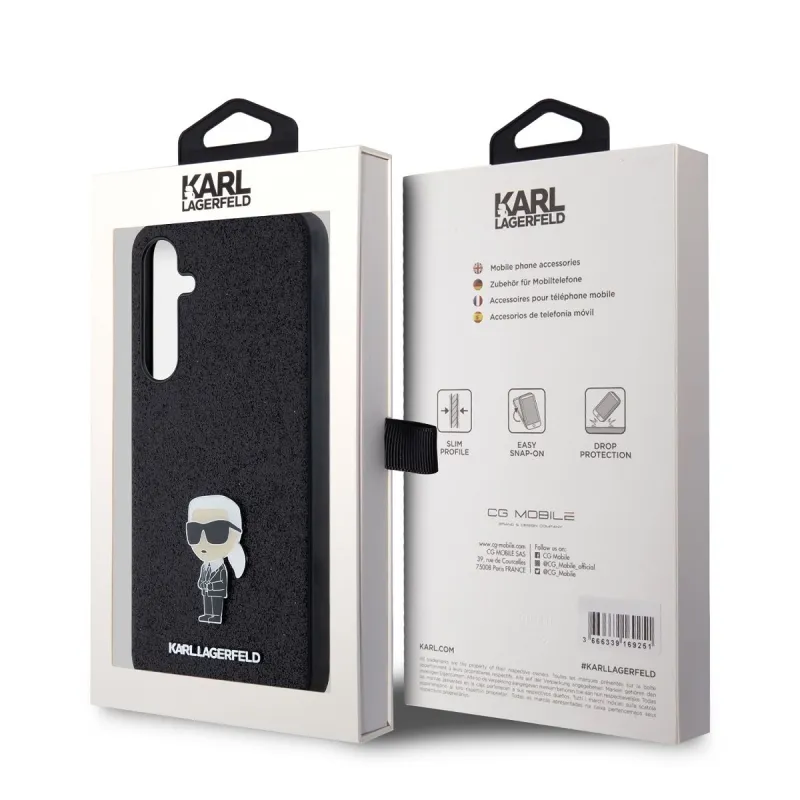 Karl Lagerfeld Fixed Glitter Metal Ikonik zadní kryt je dokonalý doplněk pro váš telefon i váš outfit, který kombinuje funkčnost a styl v jednom.