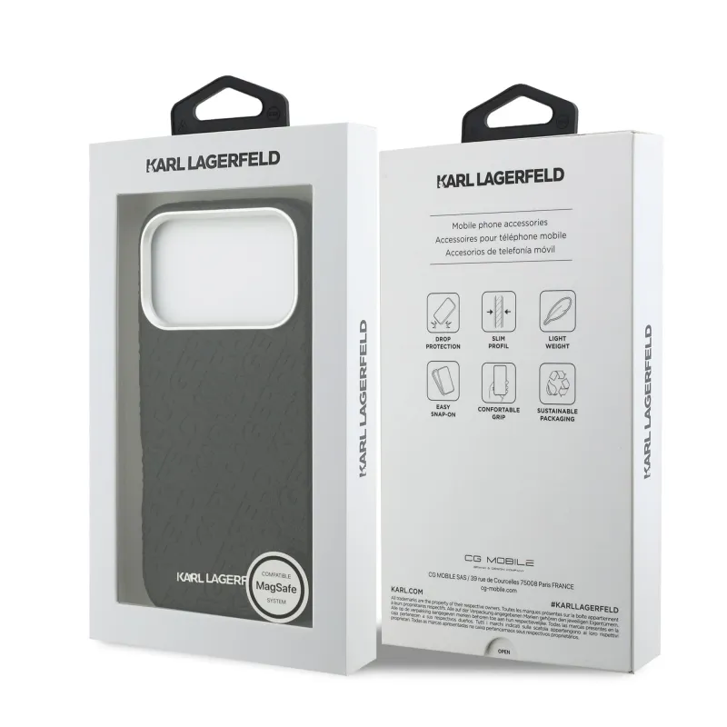 Karl Lagerfeld Grained PU Repeated Logo MagSafe zadní kryt je dokonalý doplněk pro váš telefon i outfit, který kombinuje funkčnost a styl v jednom.