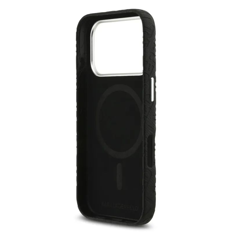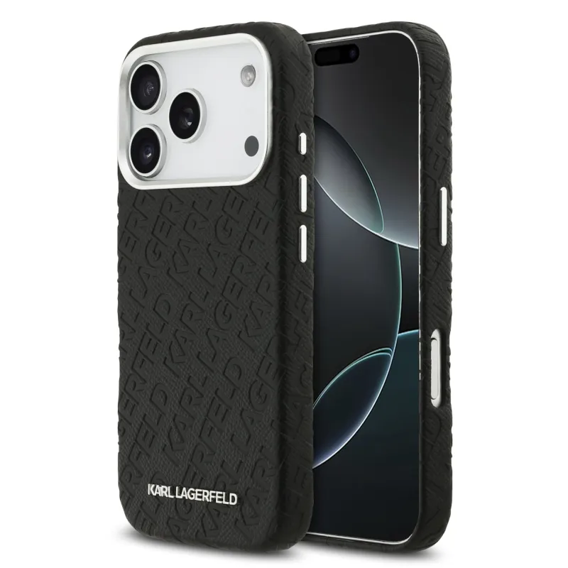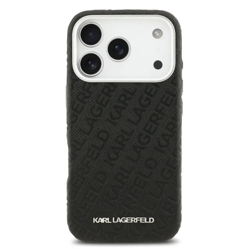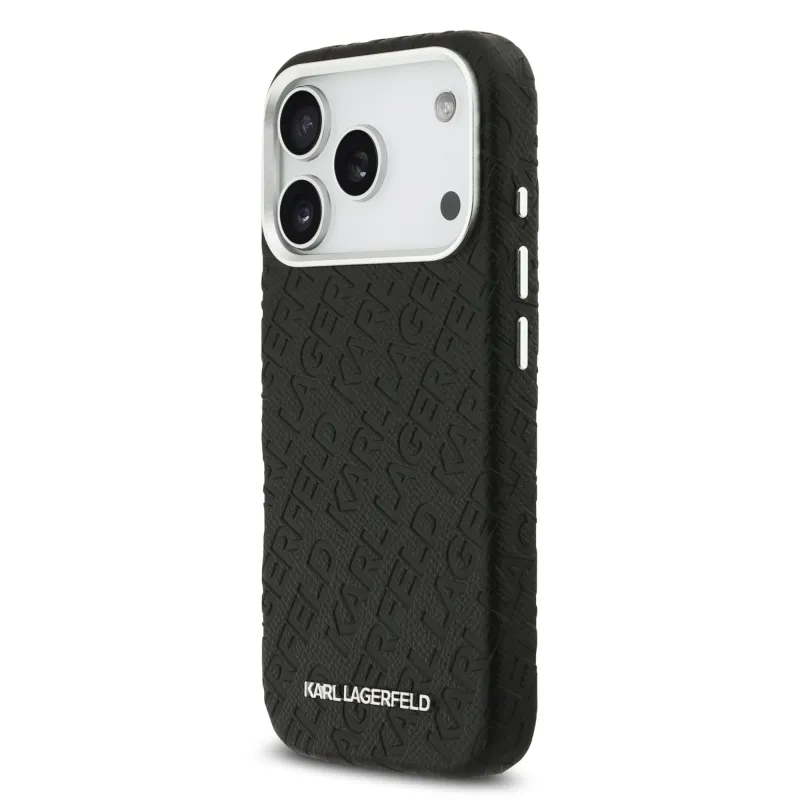 Karl Lagerfeld Grained PU Repeated Logo MagSafe Zadní Kryt pro iPhone 17 Pro Black