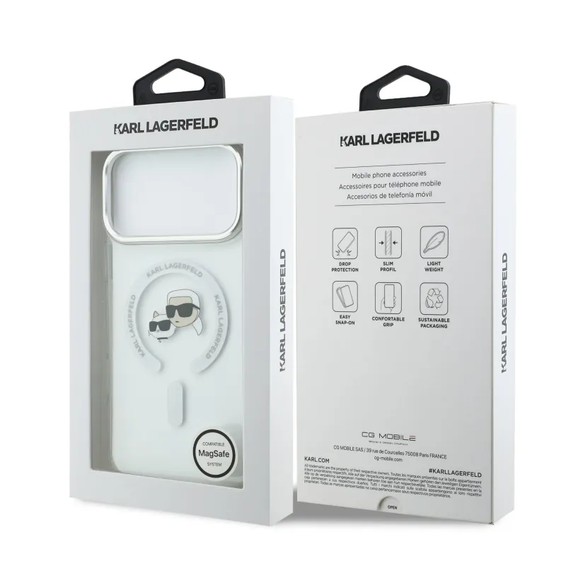 Karl Lagerfeld IML K&CH Heads Metal Frame MagSafe Zadní Kryt pro iPhone 17 Pro Max Transparent