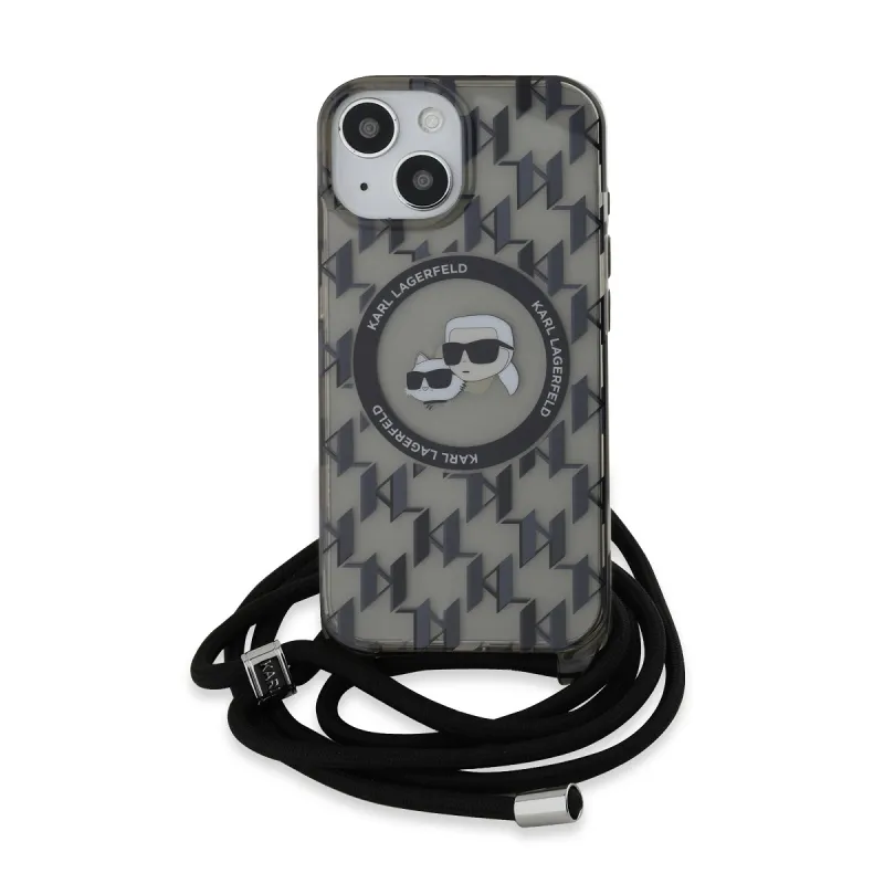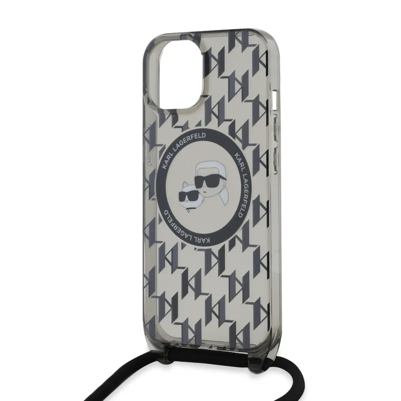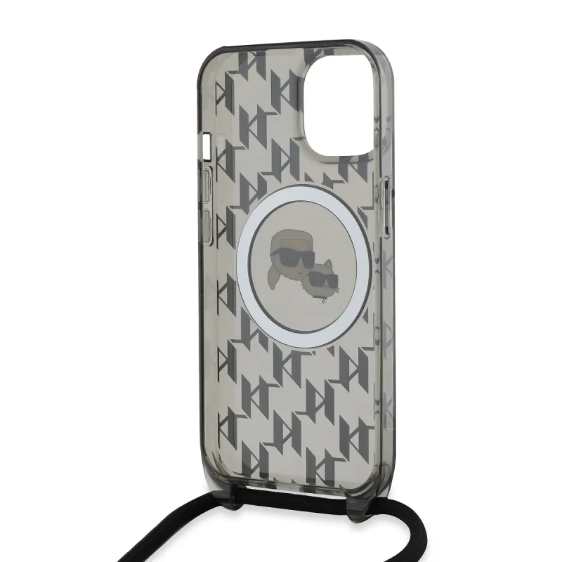 Karl Lagerfeld IML Monogram Crossbody K&CH Heads MagSafe Zadní Kryt pro iPhone 15 Black