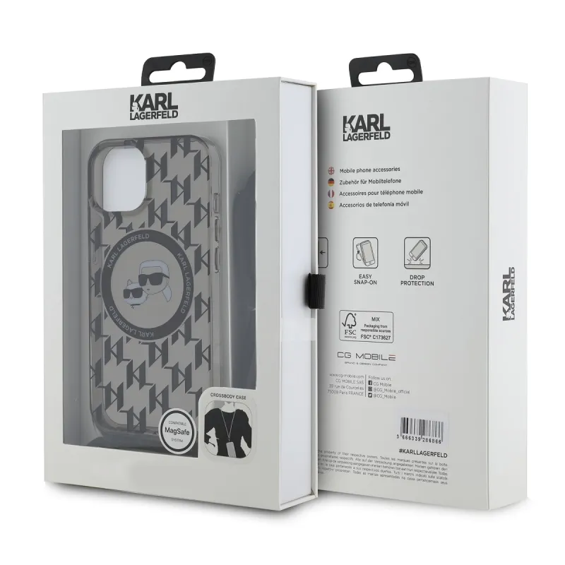 Představujeme vám prémiový kryt Karl Lagerfeld IML Monogram Crossbody K&CH Heads MagSafe- dokonalá kombinace stylu, ochrany a pohodlí pro váš telefon!
