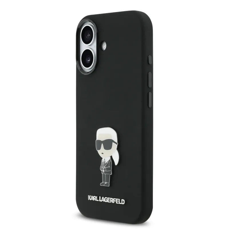 Karl Lagerfeld Liquid Silicone Metal Ikonik Zadní Kryt pro iPhone 17 Black