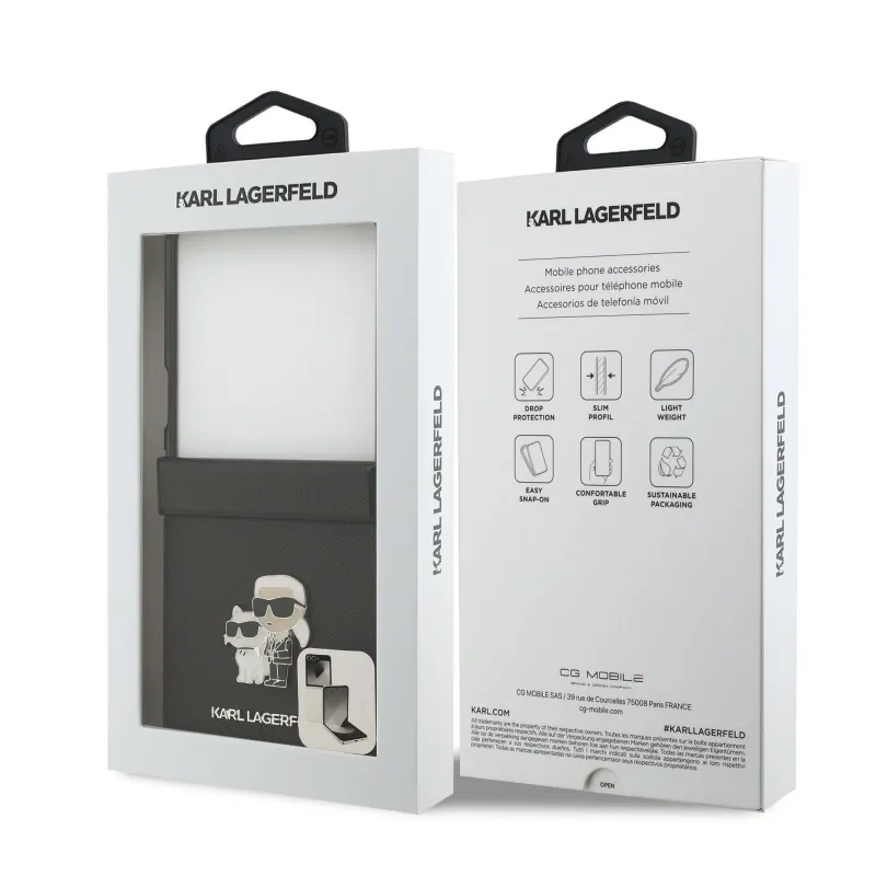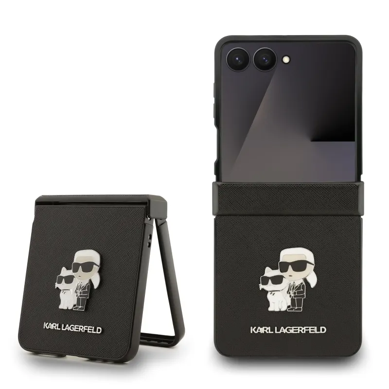 Karl Lagerfeld PU Saffiano Karl and Choupette Zadní Kryt pro Samsung Galaxy Z Flip 7 Black