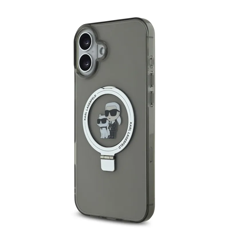 Karl Lagerfeld Ringstand Karl and Choupette MagSafe Zadní Kryt pro iPhone 16 Black