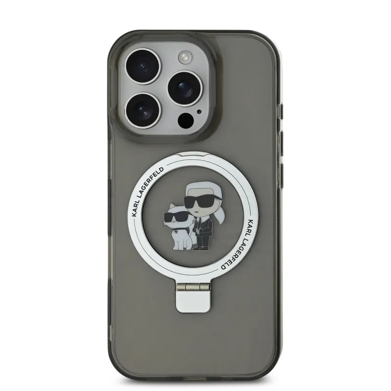 Karl Lagerfeld Ringstand Karl and Choupette MagSafe Zadní Kryt pro iPhone 16 Pro Black